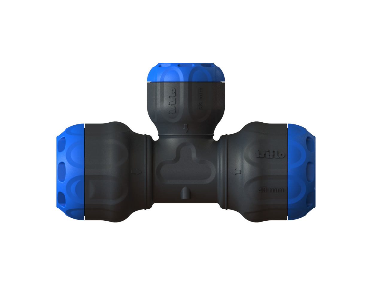 Isiflo Sprint 125 T-koppling 40x32x40mm, sprint x sprint x sprint i komposit material för PE, PEL, PEH ( PE50, PE80, PE100 ) och PEX rör.