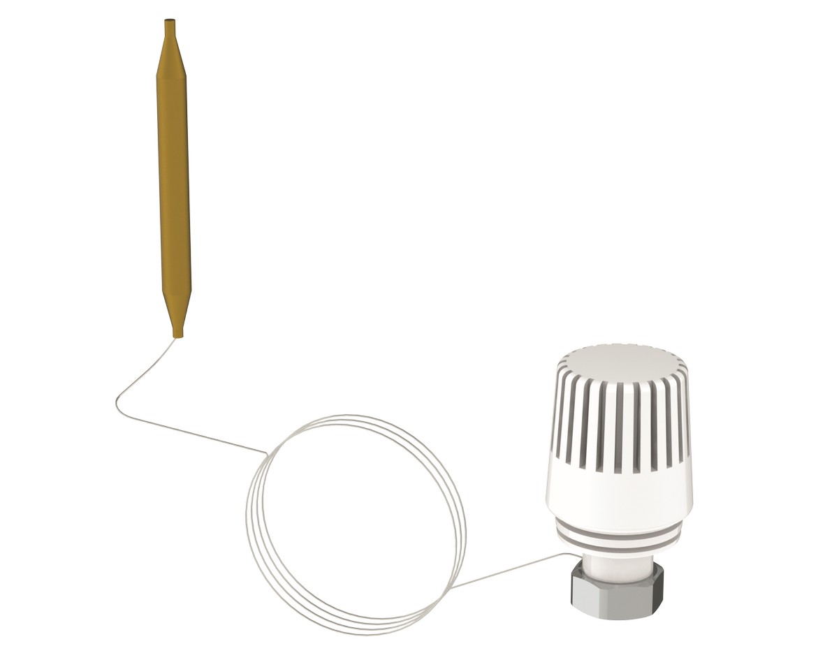 Termostatvred för montage på termostatventil med gänga M30 x 1,5. Känselkropp för montage i dykrör eller i anliggningsskena. Vissa ventiler behöver adapter.