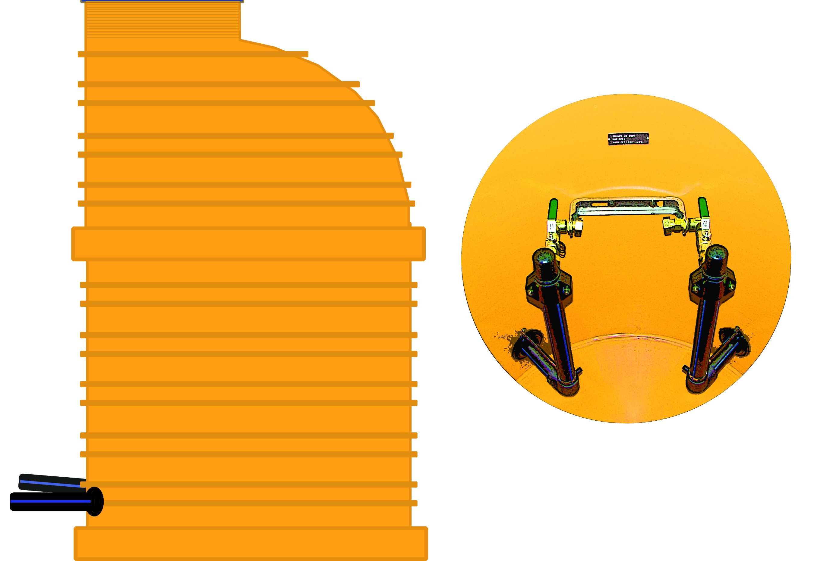 Brimer vattenmätarbrunn V1 i Polypropen(PP) med invändig D 1000mm samt inbyggd korrosionsbeständig och halksäkrad fast stege.