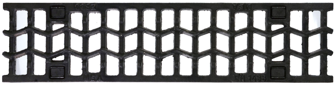Markränna Mearin Plus 100 och Expert 100 av SMC-GRP och kantförstärkning. Rännmoduler för installation utan fall. Invändig bredd 10 cm, utvändig bredd 13 cm. Belastningsklass A15 tom D400 (Plus 100) och A15 tom E600 (Expert 100).