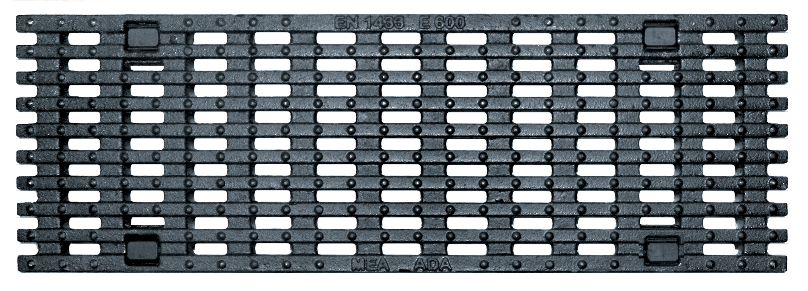 Markränna Mearin Plus 150 och Expert 150 av SMC-GRP och kantförstärkning. Rännmoduler för installation utan fall. Invändig bredd 15 cm, utvändig bredd 18,6 cm (Plus 150) och 18,2 cm (Expert 150). Belastningsklass A15 tom D400 (Plus 150) och A15 tom E600 (Expert 150).