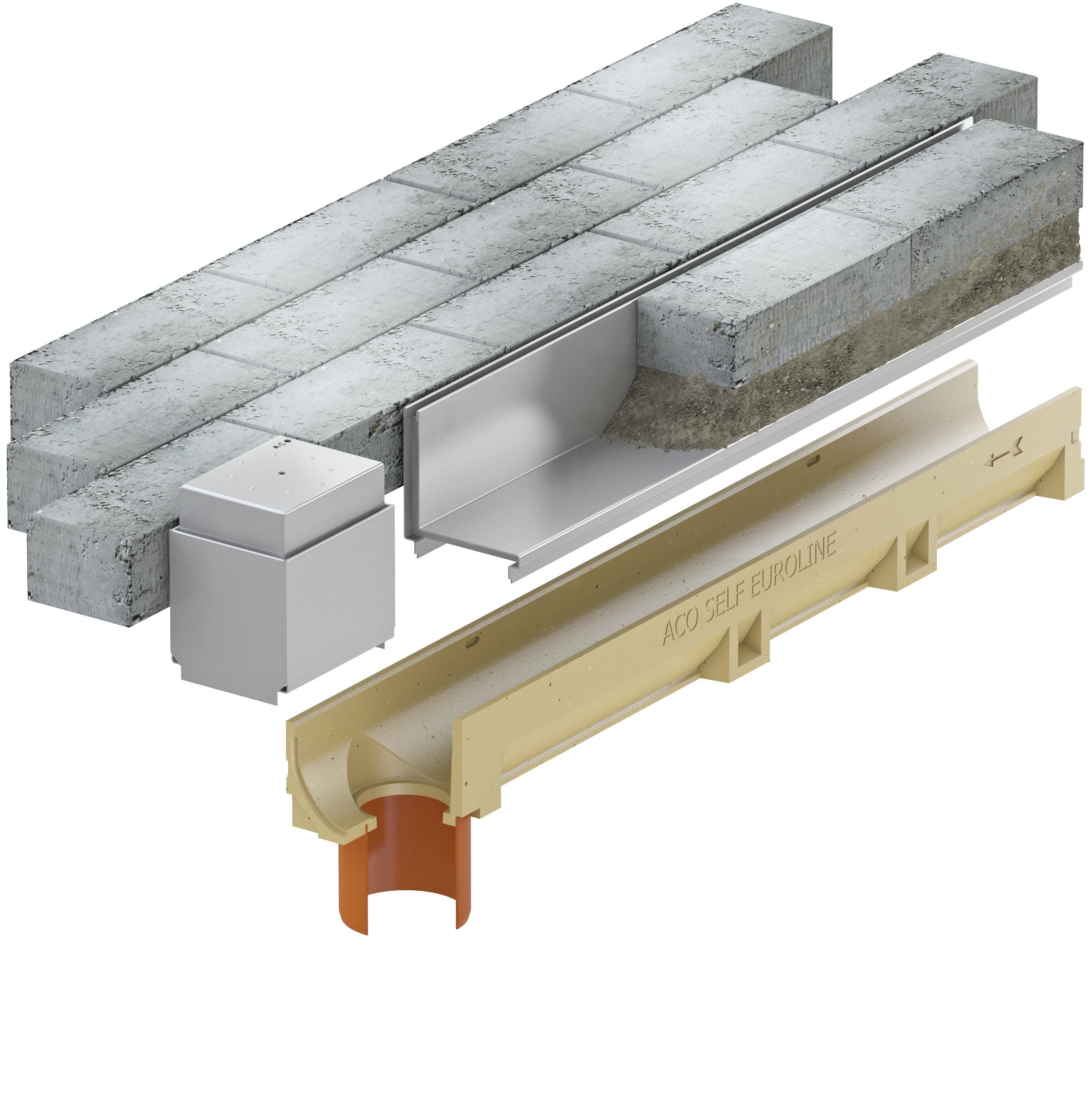 Inspektionsmodul i varmförzinkat stål till ACO Self Brickslot. Mått (LxBxH): 150 x 118 x 105 mm