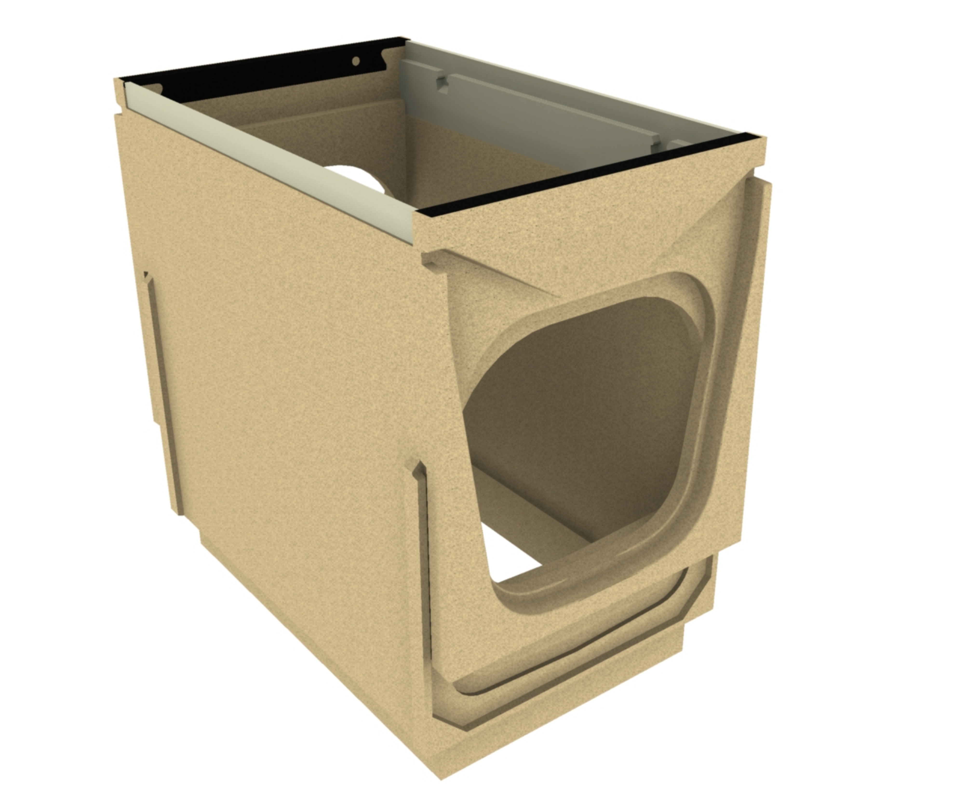 Sandfång Mearin Plus/Expert 300 av polymerbetong och kantförstärkt i galvaniserat stål. Upplyftbar sandfångshink i zink. Anslutning dia 160 mm. Invändig bredd 30 cm, utvändig bredd 33,6 cm. Belastningsklass A15 tom D400. För Clipfix-låsning.
