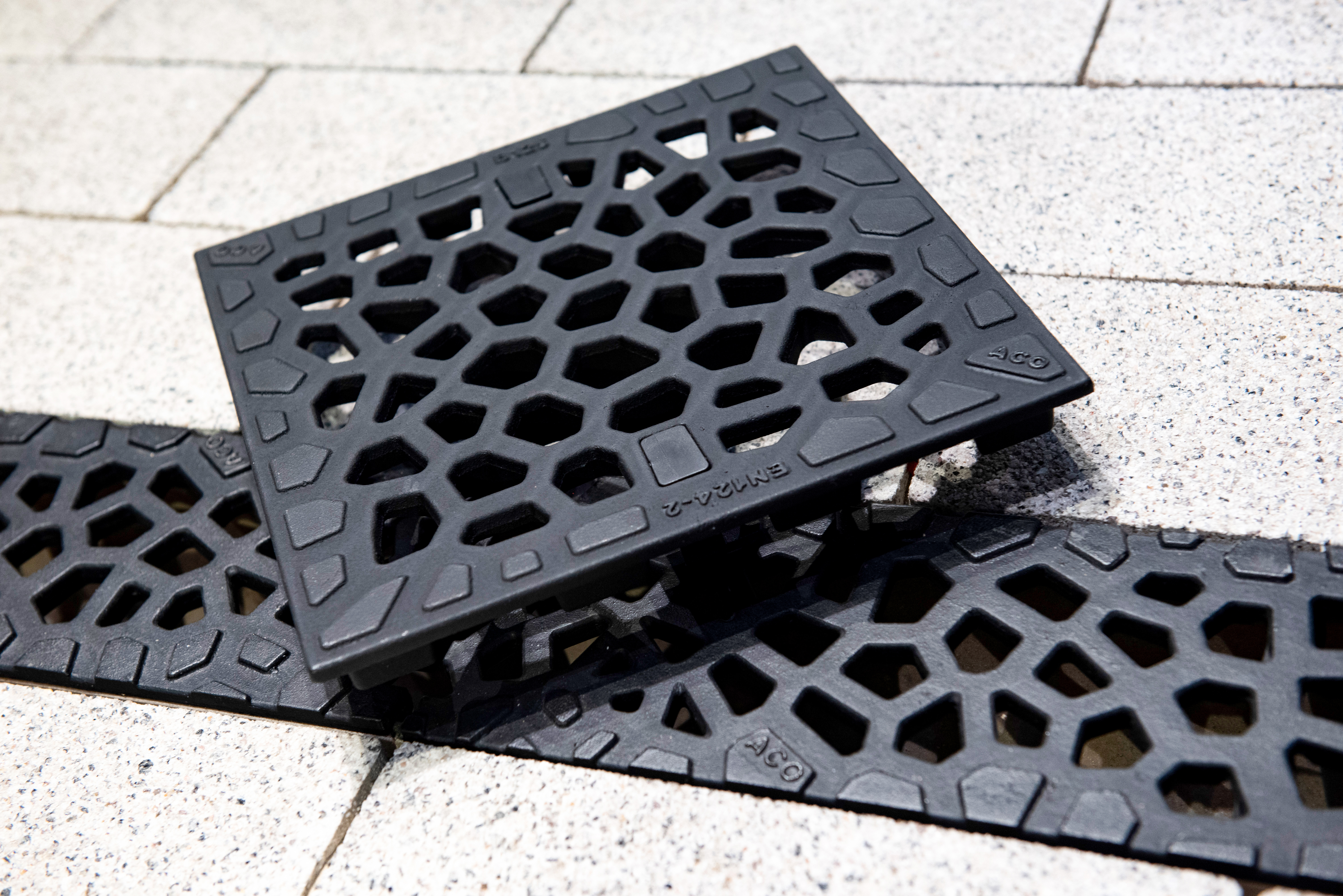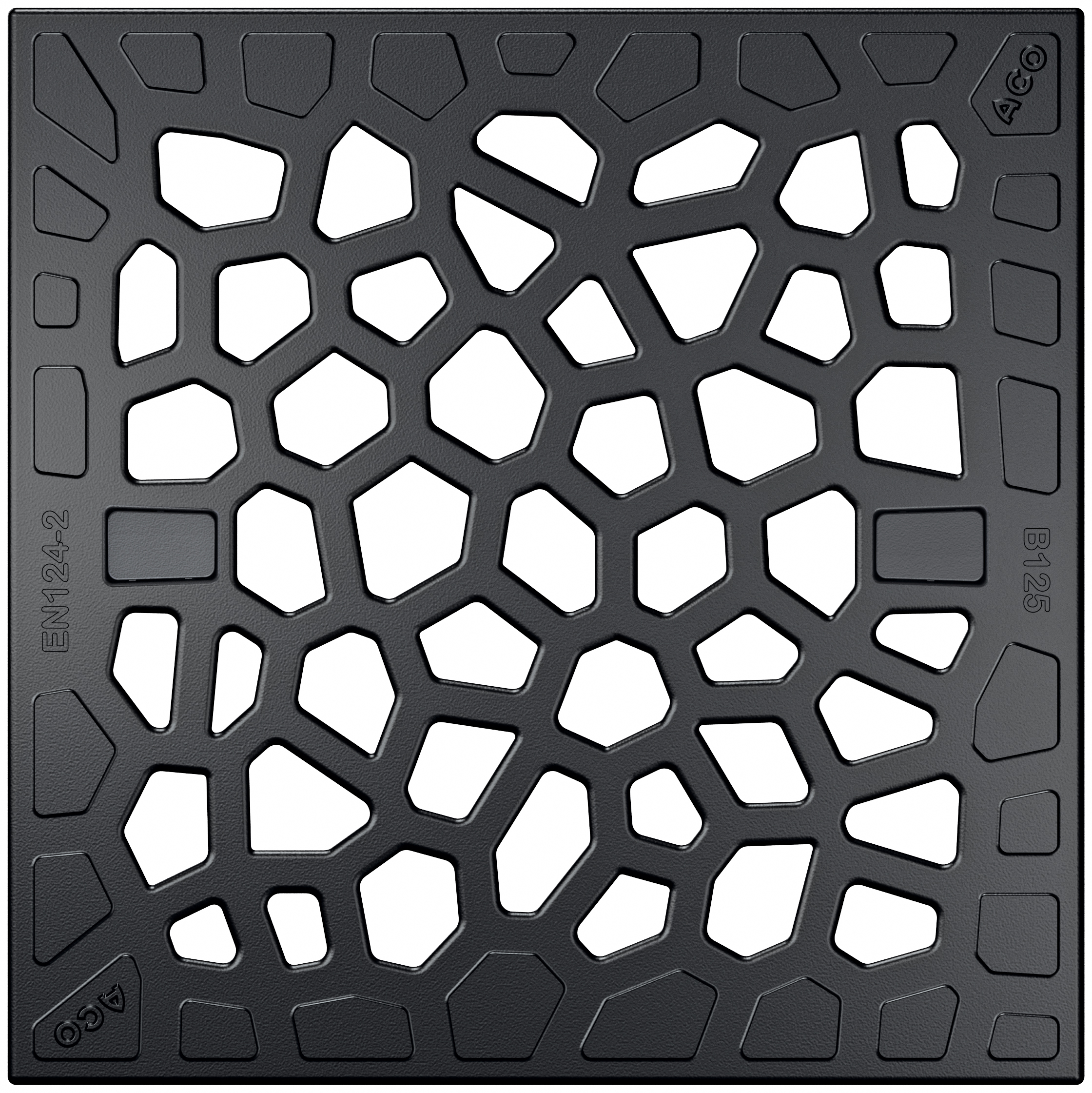 Segjärnsgaller med ett organiskt mönster med inspiration från naturen. Voronoi vann Reddot Award för bästa produktdesign 2020. Mått: 249 x 249 mm. Passar till ACO Self Europoint