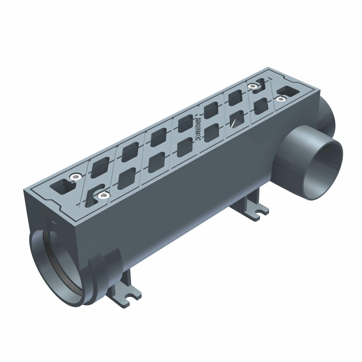 Linjeavvattning i segjärn för att ta hand om nederbörd. Rännorna är anpassade för parkering, parkeringsgarage, gång- och cykeltrafik, vägar, flygplatser samt tung industri.