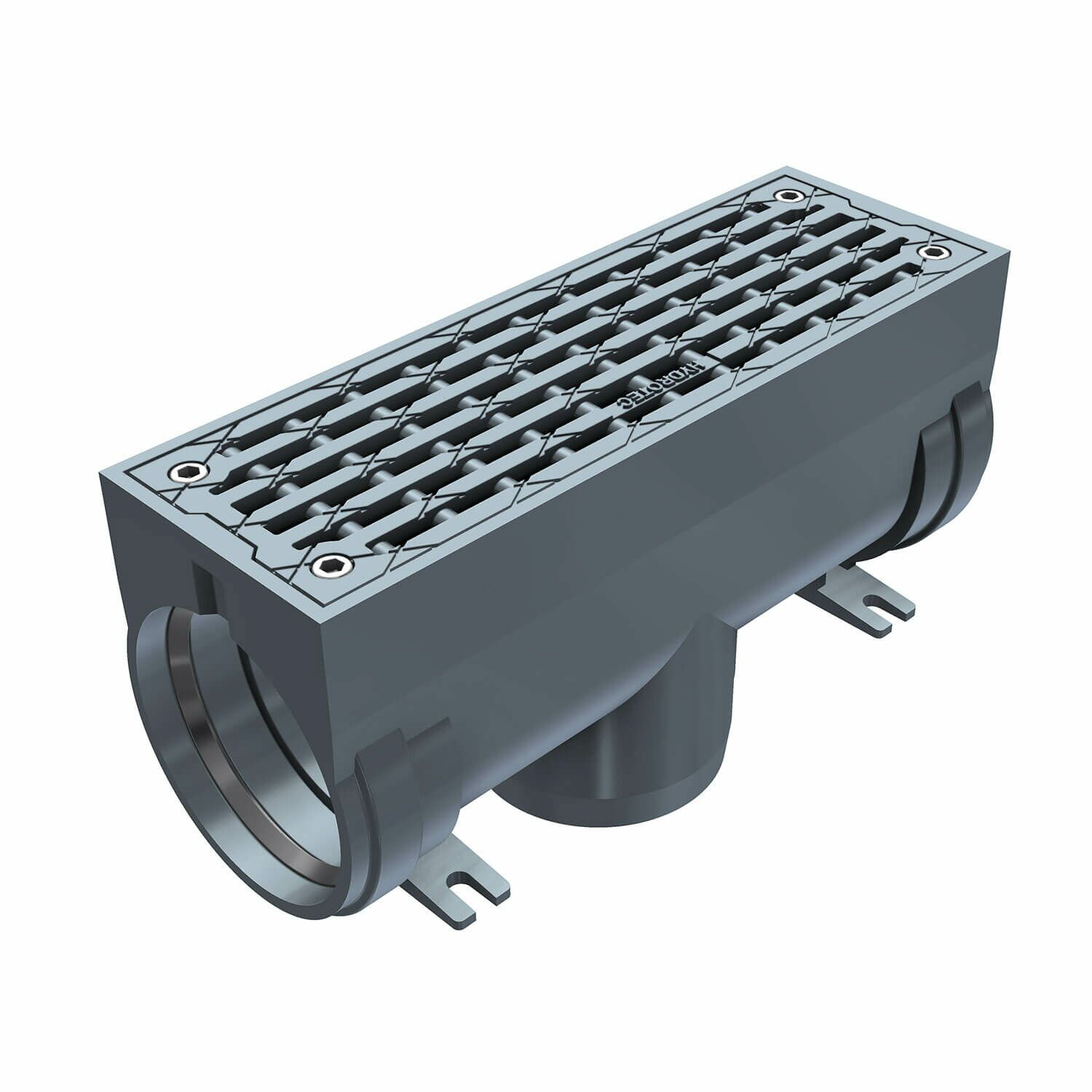 Linjeavvattning i segjärn för att ta hand om nederbörd. Rännorna är anpassade för parkering, parkeringsgarage, gång- och cykeltrafik, vägar, flygplatser samt tung industri.