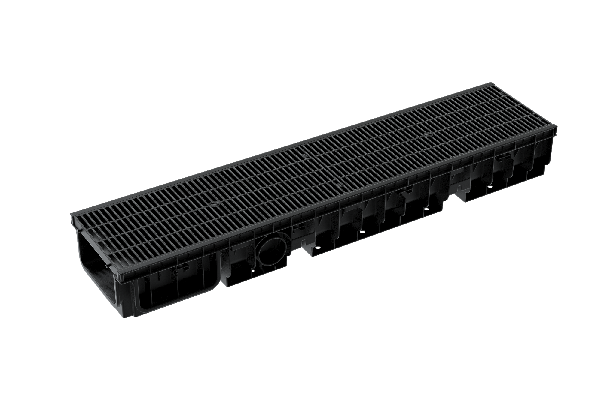 Linjeavvattning i polyethylen för att ta hand om nederbörd. Rännorna är anpassade för parkering, parkeringsgarage, gång- och cykeltrafik, vägar, flygplatser samt tung industri.