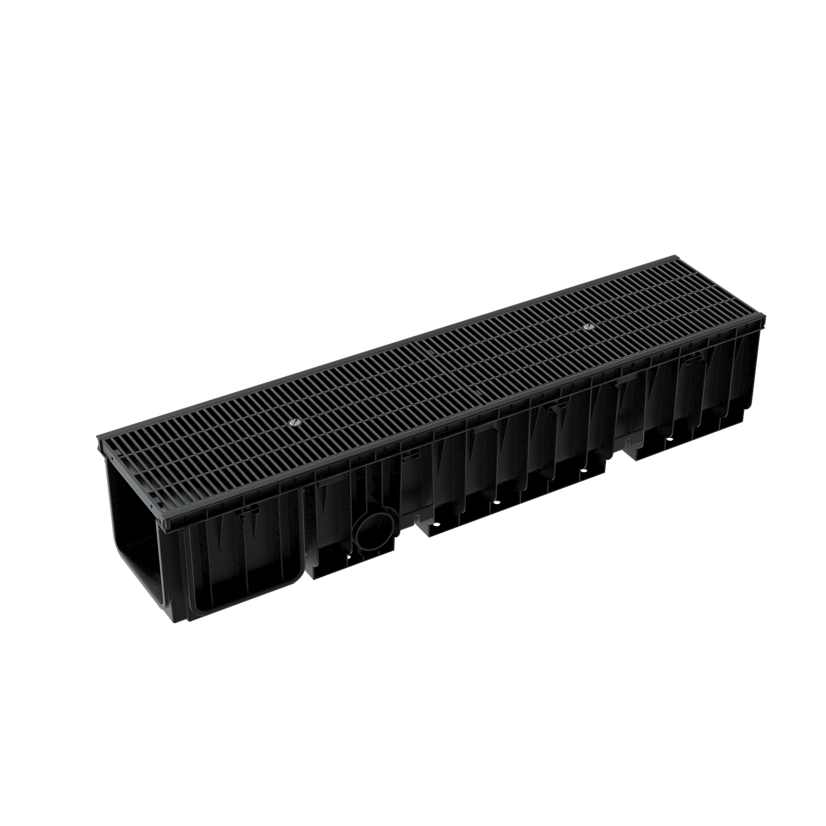 Linjeavvattning i polyethylen för att ta hand om nederbörd. Rännorna är anpassade för parkering, parkeringsgarage, gång- och cykeltrafik, vägar, flygplatser samt tung industri.