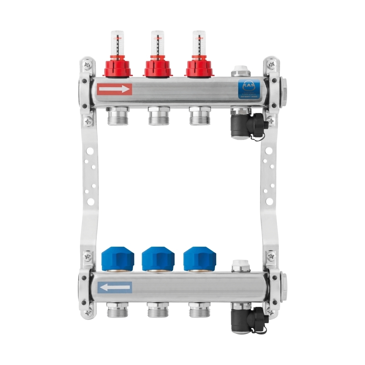 Golvvärmefördelare R25 i rostfritt stål med flödesmätare och handmanöverdon (serie N75AS)
