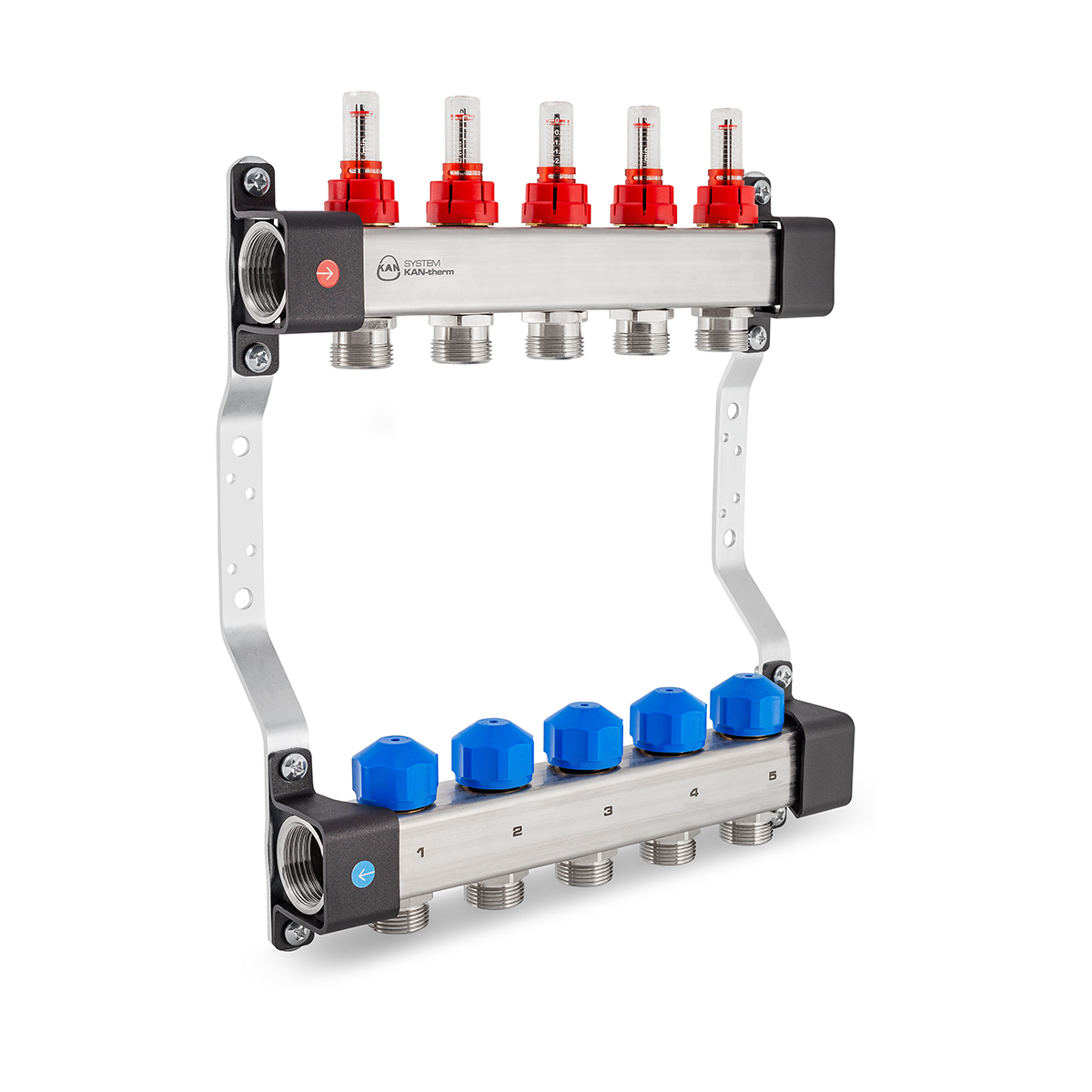 Golvvärmefördelare InoxFlow G25 i rostfritt stål med flödesmätare och handmanöverdon (serie UFS)