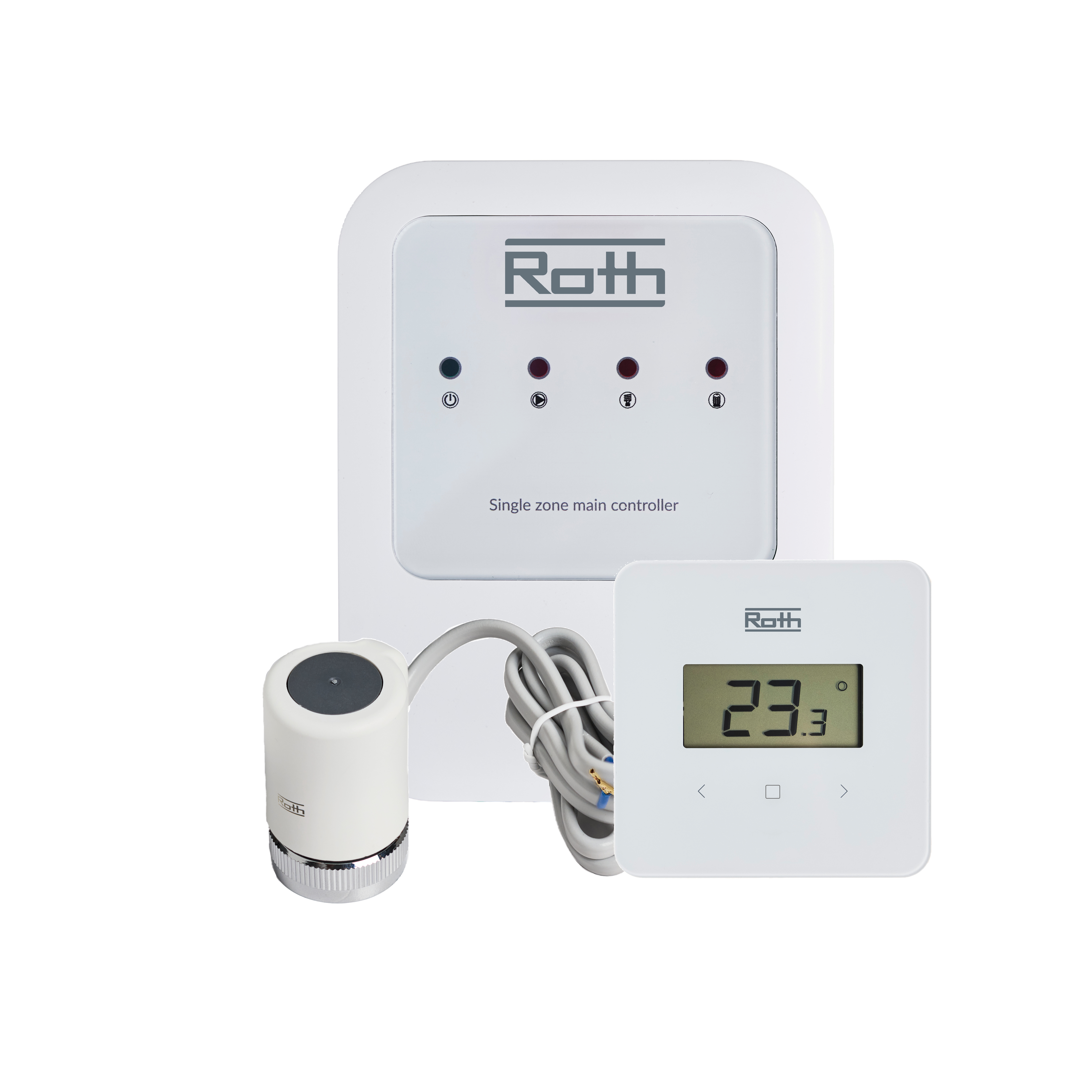 Paket innehållande trådlös termostat standard, motor och mottagarenhet.