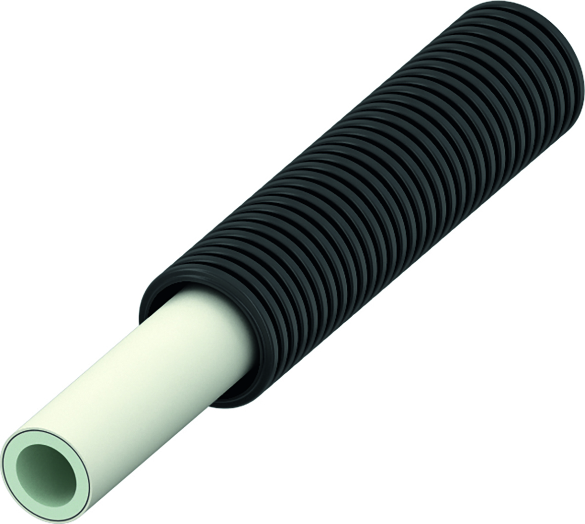 Formstabilt 5-lagers kompositrör enligt EN ISO 21003 för tappvatten- och värmeinstallationer med tomrör av PE-HD.