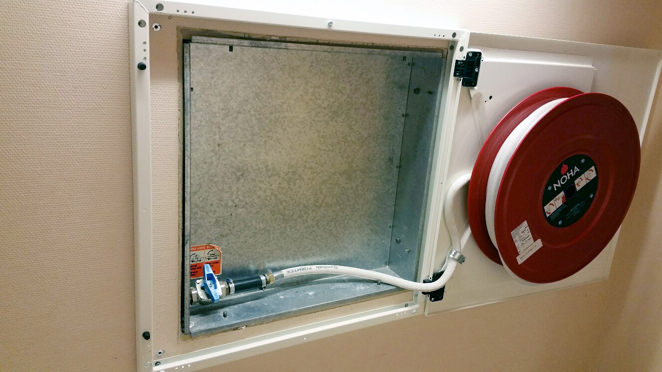 NOHA REHAB för byte av brandpost infälld i vägg. Passar alla vanliga brandposter med yttre dimensioner på max 800 x 800 mm. Enligt SS-EN 671-1 CE-märkta.
