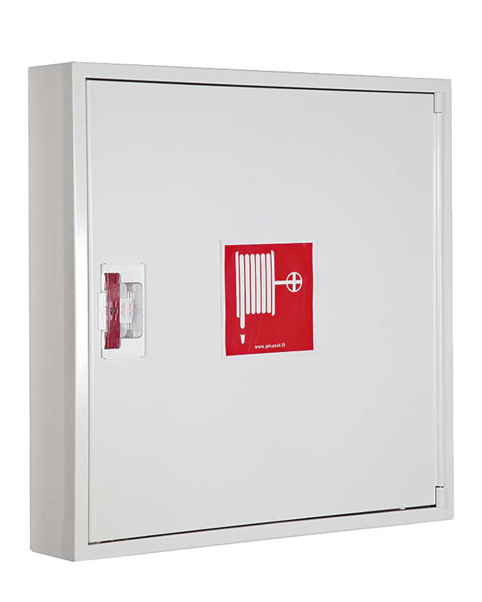 Smalt brandpostskåp för väggmontage med 25mm/30m brandpostslangen, inkl. strålrör och ventil, 790x790x140mm.