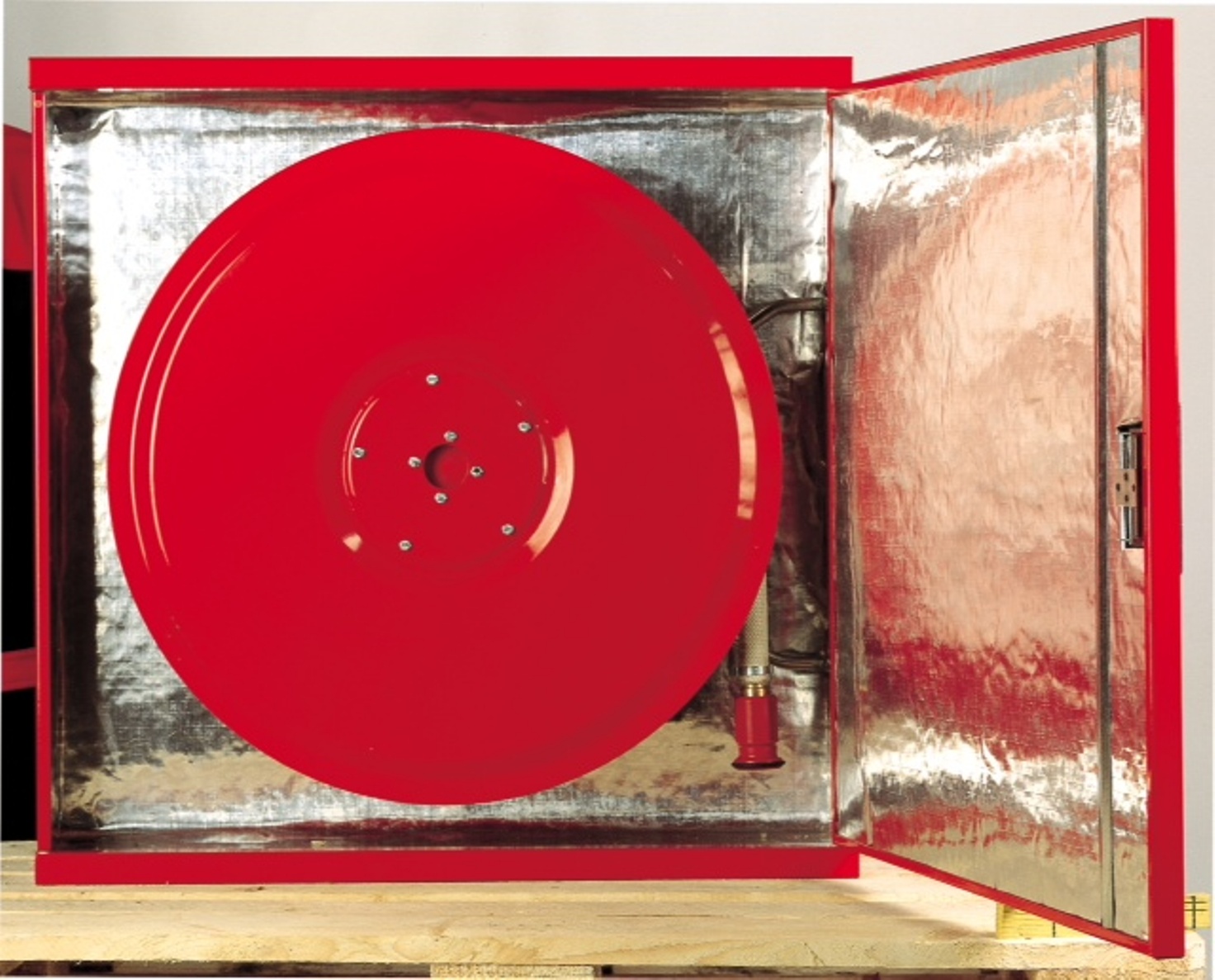 Brandpostskåp med 35 m slang 19 mm. Utrustad med isolering och eluppvärmd vilket gör den lämplig för frostutsatta miljöer.