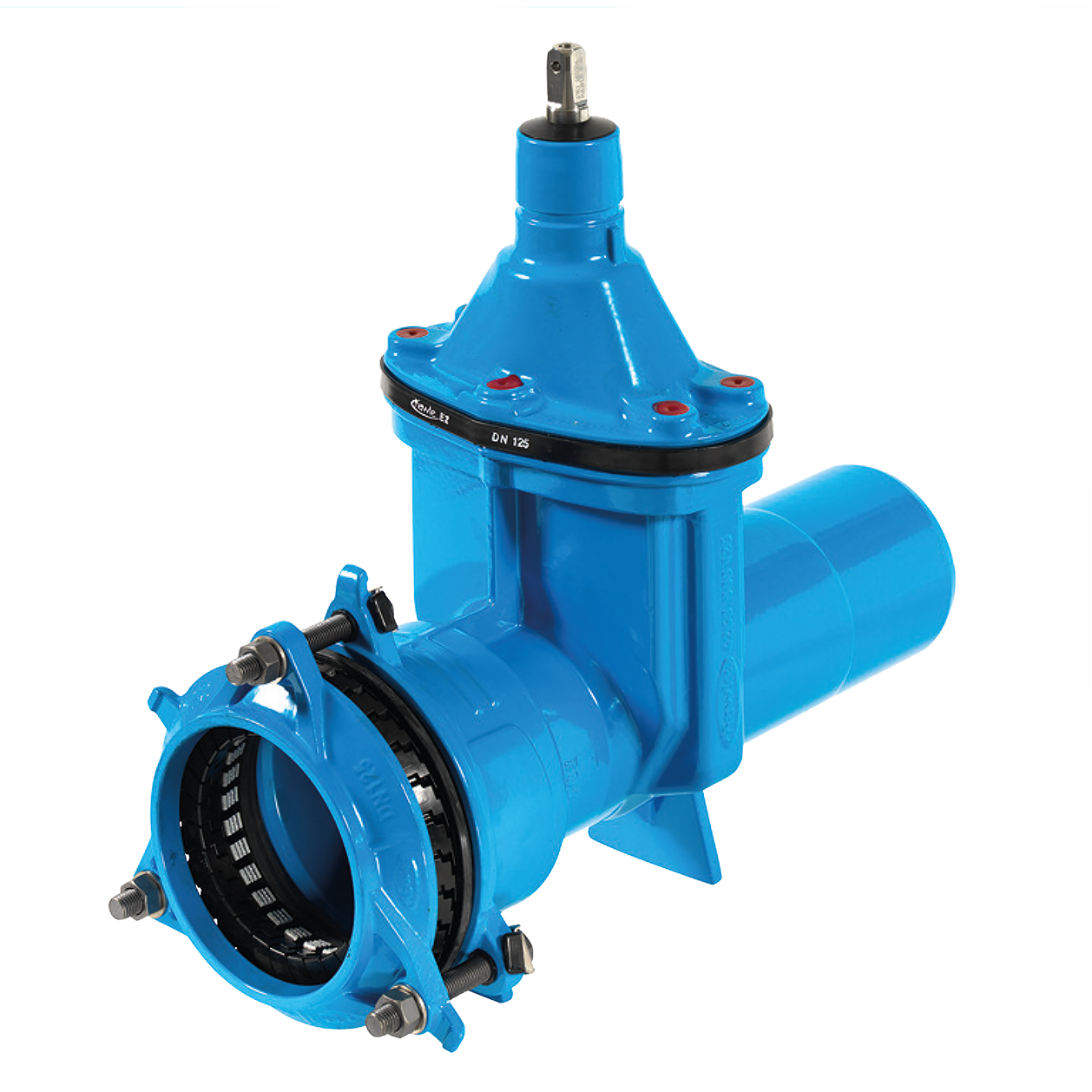 Ventil med Synoflex universalmuff och slät spikända. Dragsäker på segj./stål/PE och PVC-rör. Stödhylsa krävs på PE SDR17 och 26