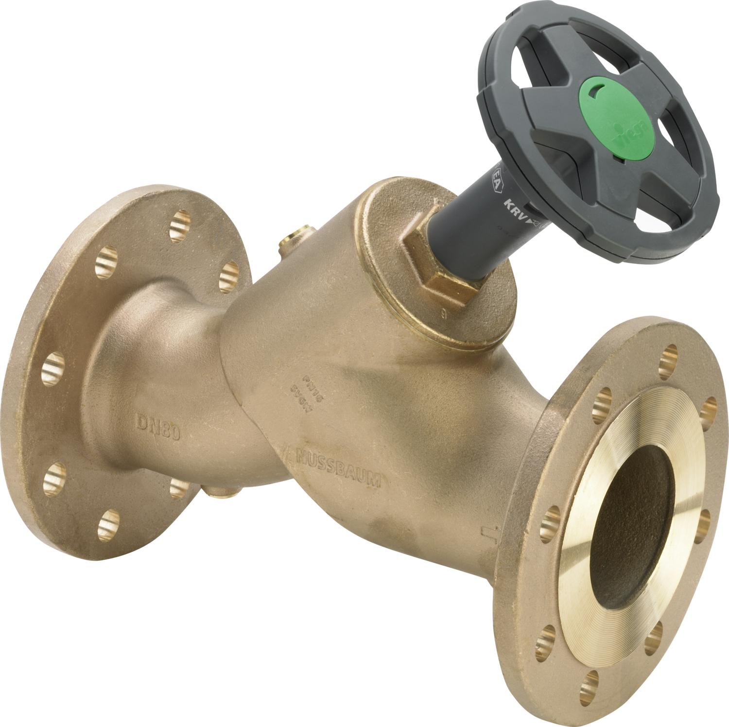 Easytop snedsätesventil (friflödesventil), med flänsanslutning DIN EN 1092-1, ventilhus och -överdel av rödgods enligt DIN 50930-6, ventilsäte av rostfritt stål, med spindelutväxling och lägesindikator för öppen/stängd, ratt med utbytesbar mediemärkning grön/röd, med tömningspropp, drifttryck max 1,6 MPa (PN 16), drifttemperatur max 90 grader, med DVGW-kontrollmärke.