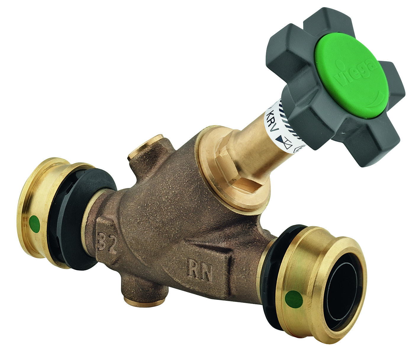 Viega Easytop kombinerad snedsätesventil KRV BASIC (friflödesventil med backventil), med Raxofix anslutningar, med SC-Contur. Ventilhus och -överdel av rödgods enligt DIN 50930-6, ventilsäte av rostfritt stål, med spindelutväxling och lägesindikator för öppen/stängd, ratt med utbytesbar mediernmärkning grön/röd, med tämningspropp, drifftryck: 16bar (PN 16), drifftemperatur: 90grader, med DIN-DVGW-kontrollmärke. Modell 5337