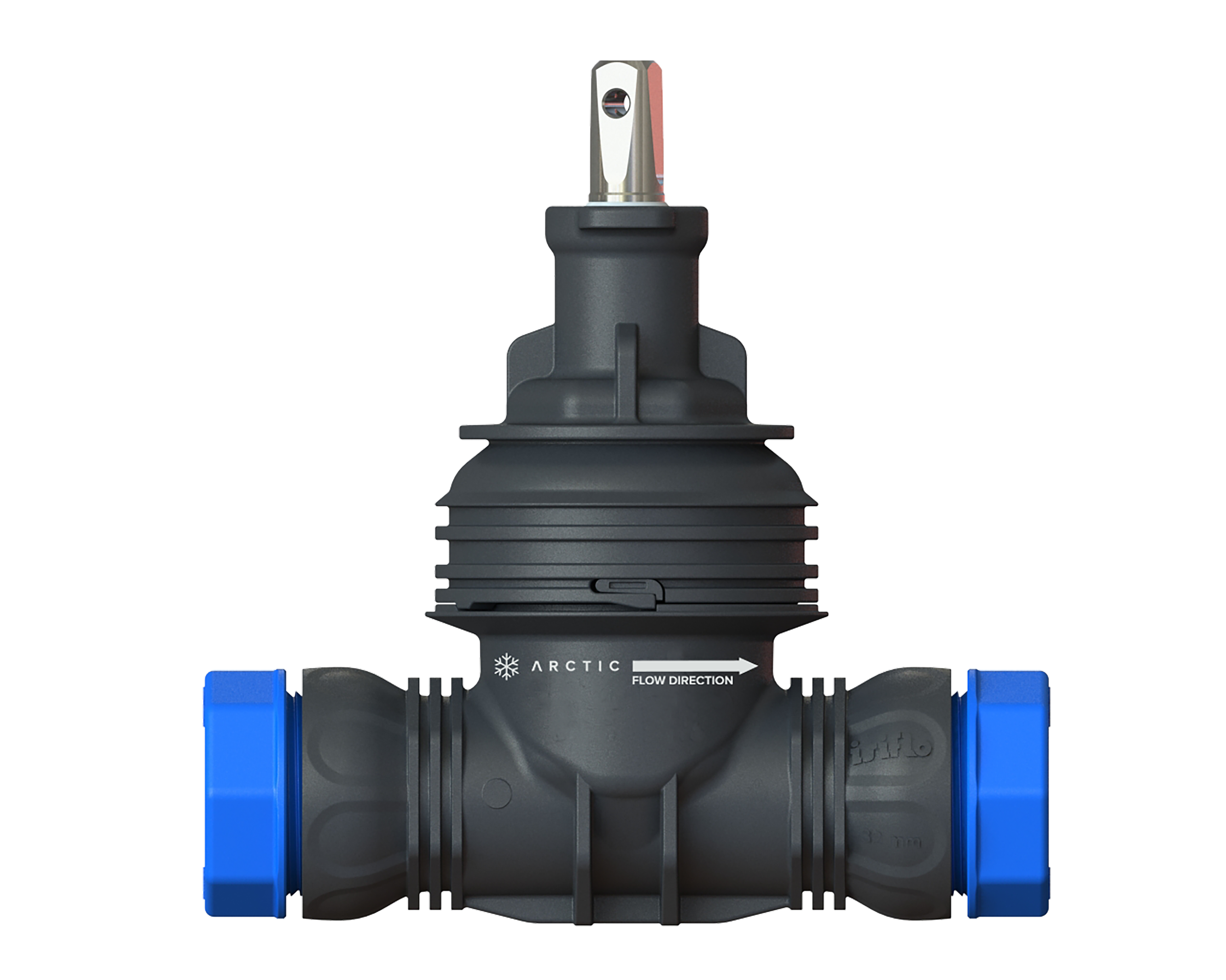 Isiflo 201 Servisventil 63x63 i komposit, med spindel i syrafast material. Klämringskoppling för PE/PVC rör. Frostsäker och självdränerande