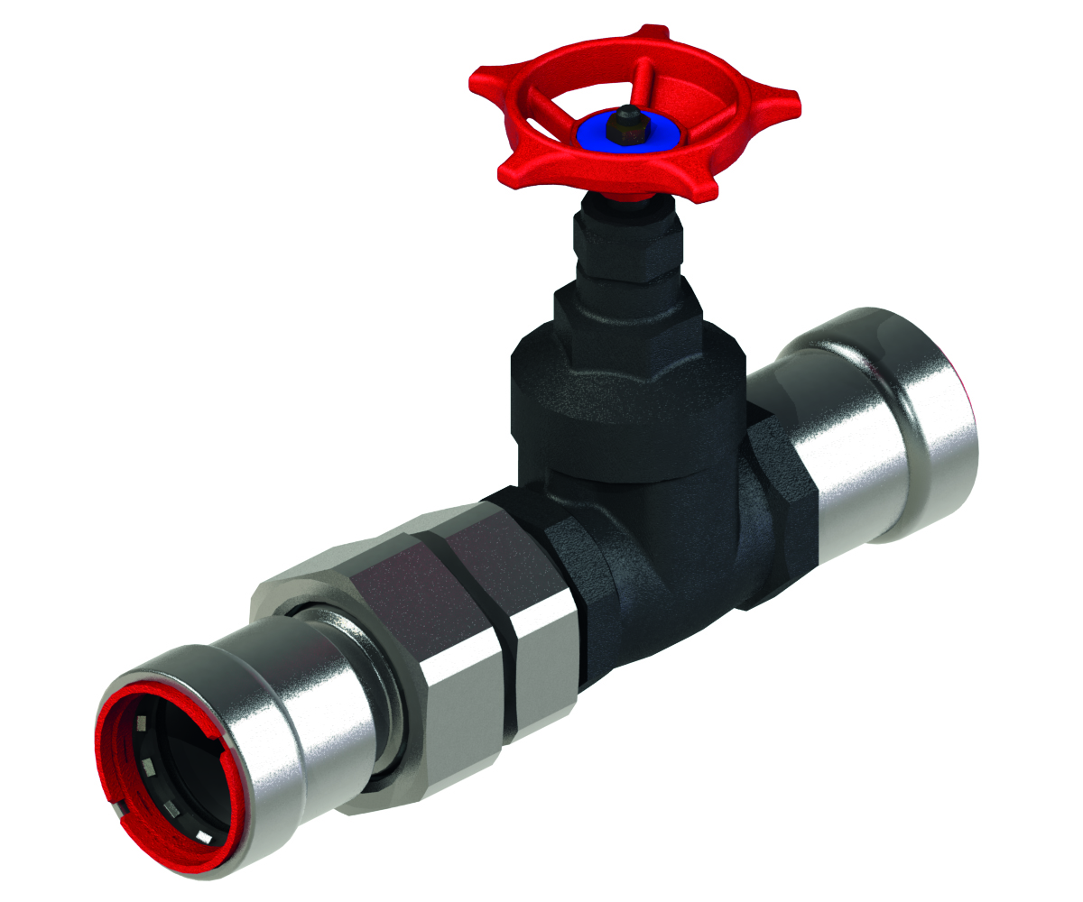 VSH PowerPress PPSU1070/125 Kilslidsventil med union, 2". Avsett för installationer av värme, sprinkler, kyla och tryckluft tillsammans med stålrör.