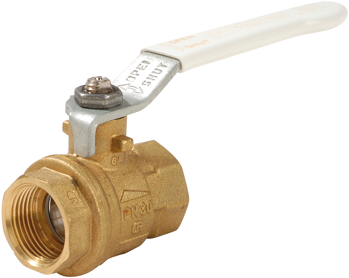 VM 4203 av avzinkningshärdig mässing. PN40, fullt genomlopp.
