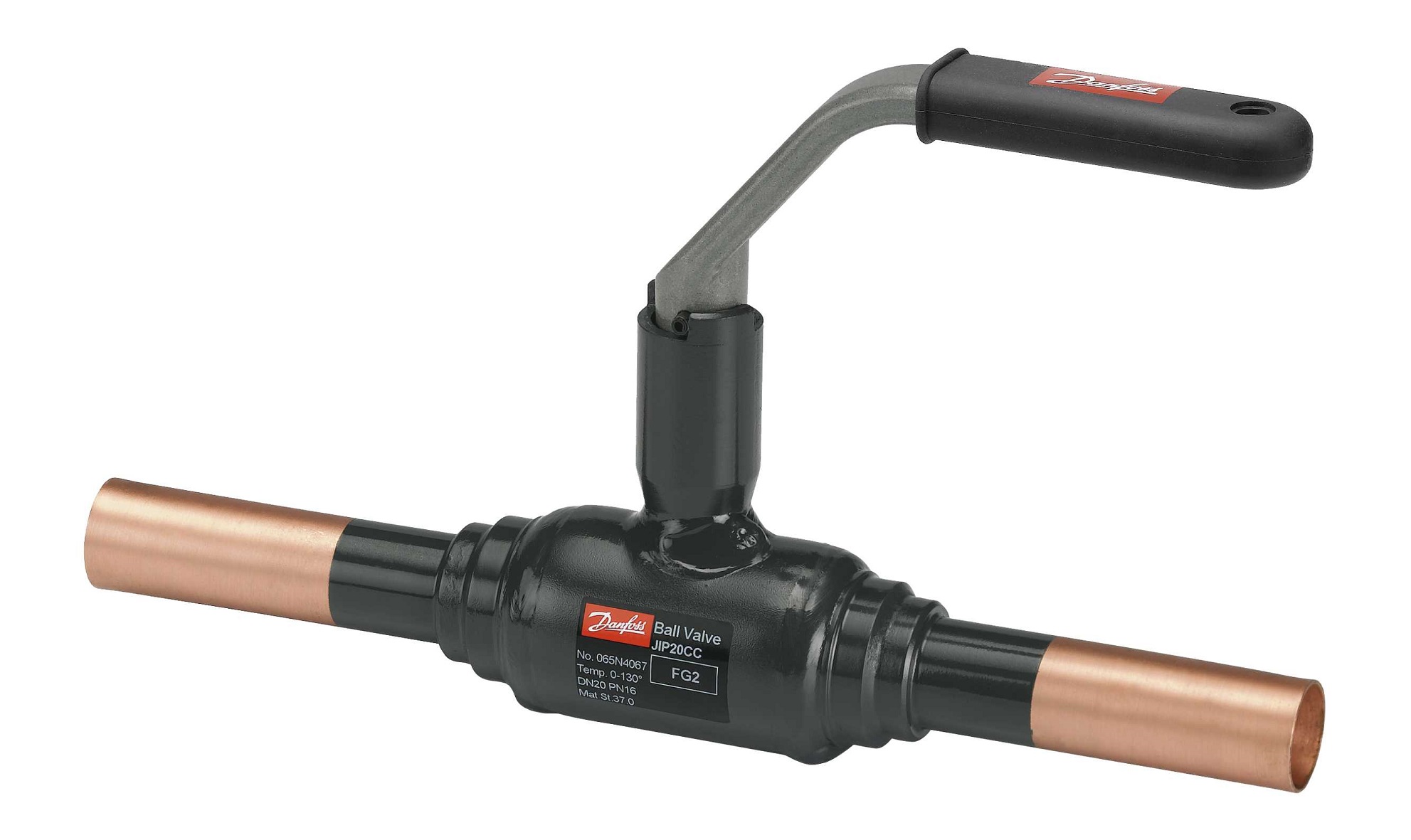 Kulventil typ JIP DN15, PN16, Kv12, Kopparanslutning, med L-handtag, Max180° C