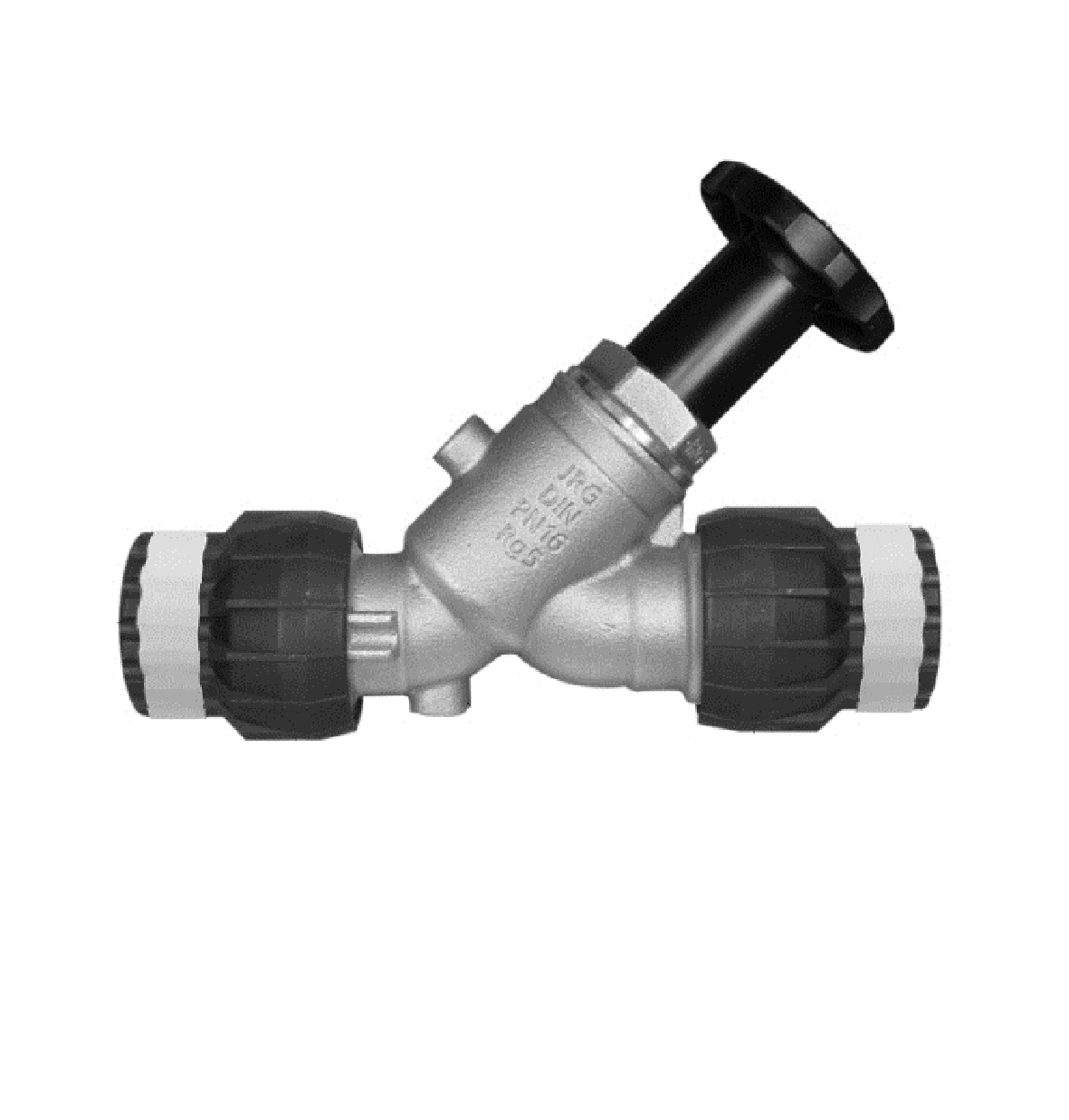 tillverkad av brons, blankslipad icke stigande ventilnål och ventilhus av rostfritt stål, EPDM -tätningar, handhjul i plast, kopplingsmutter i plast. För vatten upp till 90°C. Testad i enlighet med DIN EN 13959, ljudtestad, ventilljud enligt grupp 1. Avstängningsventil ovan q.v. 5290,