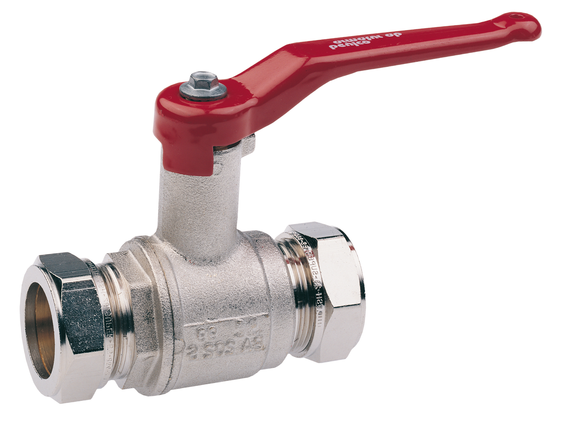 Kulventil BA 202S med fullt genomlopp, klämringskoppling, handtag och hög spindelhals.