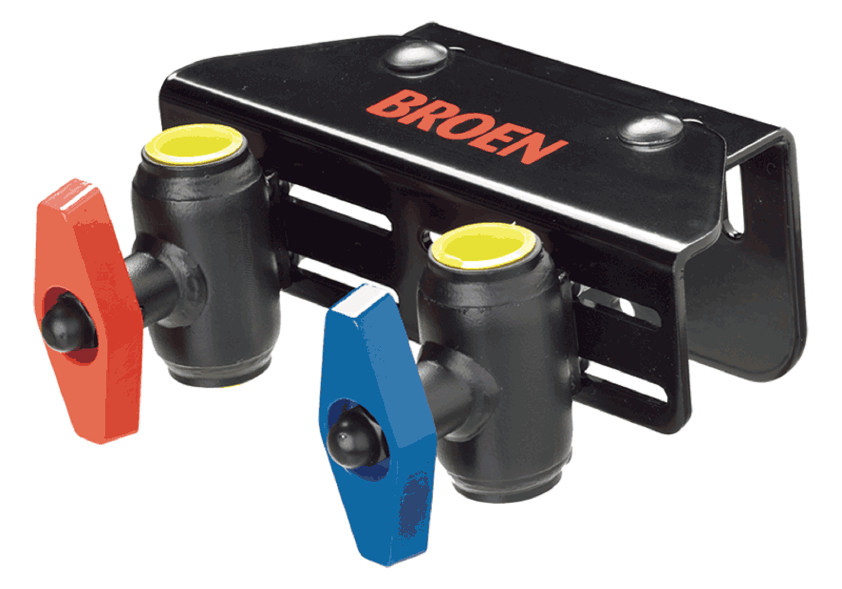 Ballomax 730 Tvillingventil R25xR25, ( DN25 ) invändig gänga x invändig gänga med rött och blått handvred på flexkonsol PN40