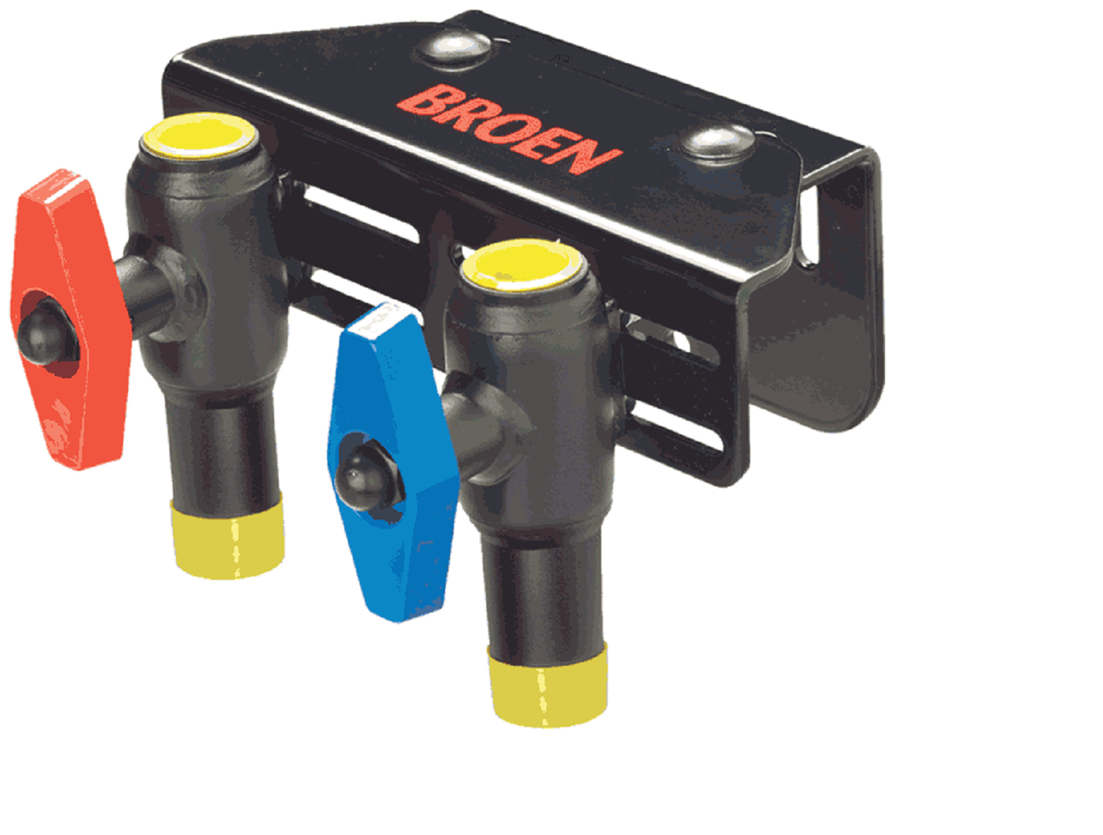 Ballomax 731 Tvillingventil R25x33,7, ( DN25 ) invändig gänga x svetsända med rött och blått handvred på flexkonsol PN40