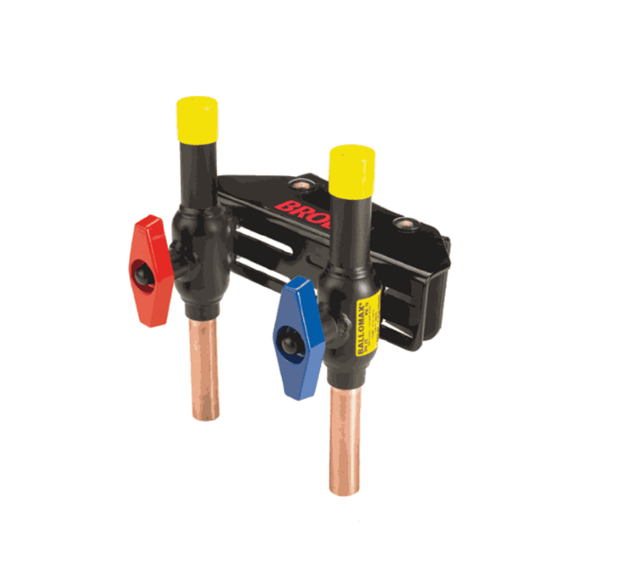 Ballomax 732 Tvillingventil R25x28, ( DN25 ) invändig gänga x cu-ända med rött och blått handvred på flexkonsol PN16