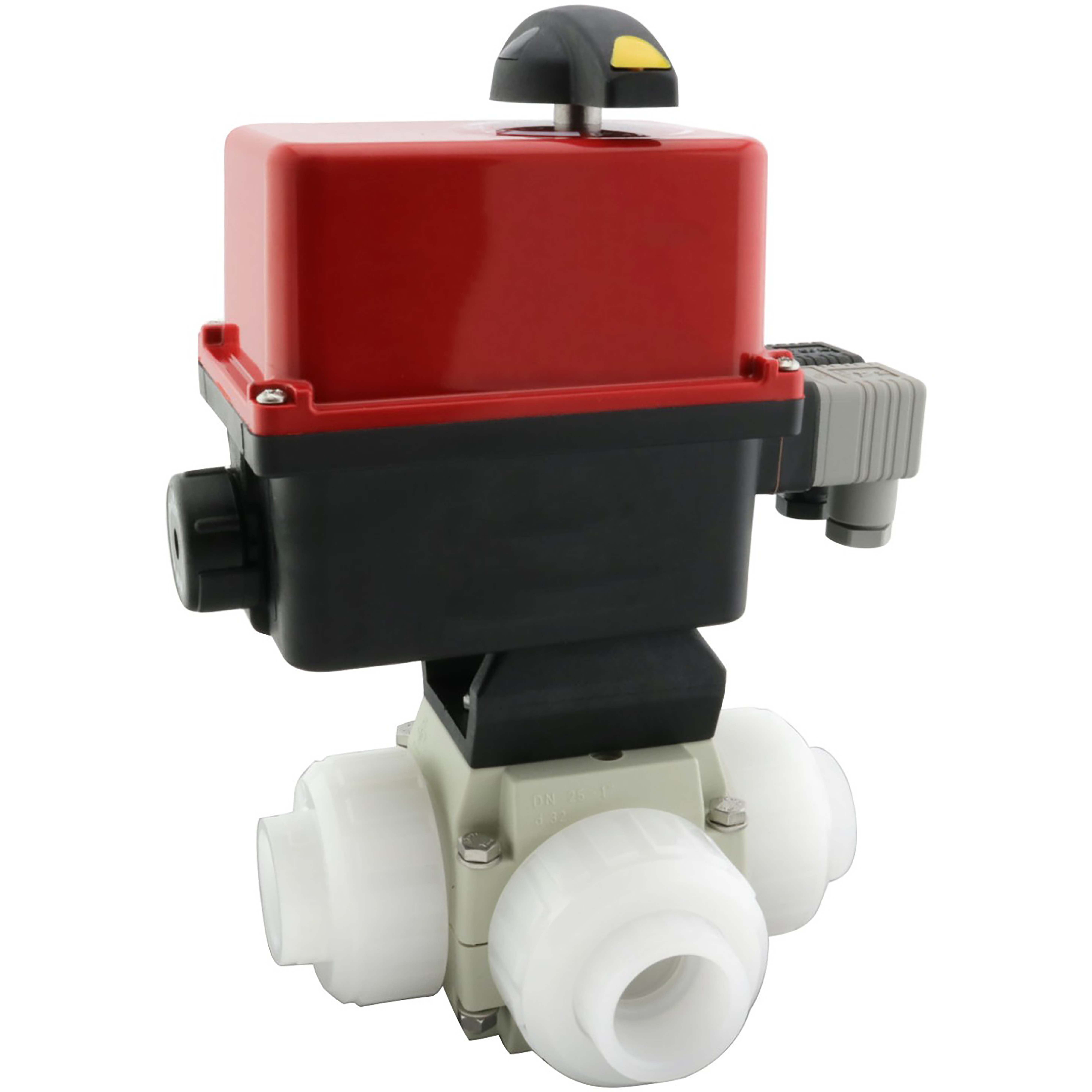 PVDF-kulventil L-borrad d63mm FPM med don ER35-24vac/dc