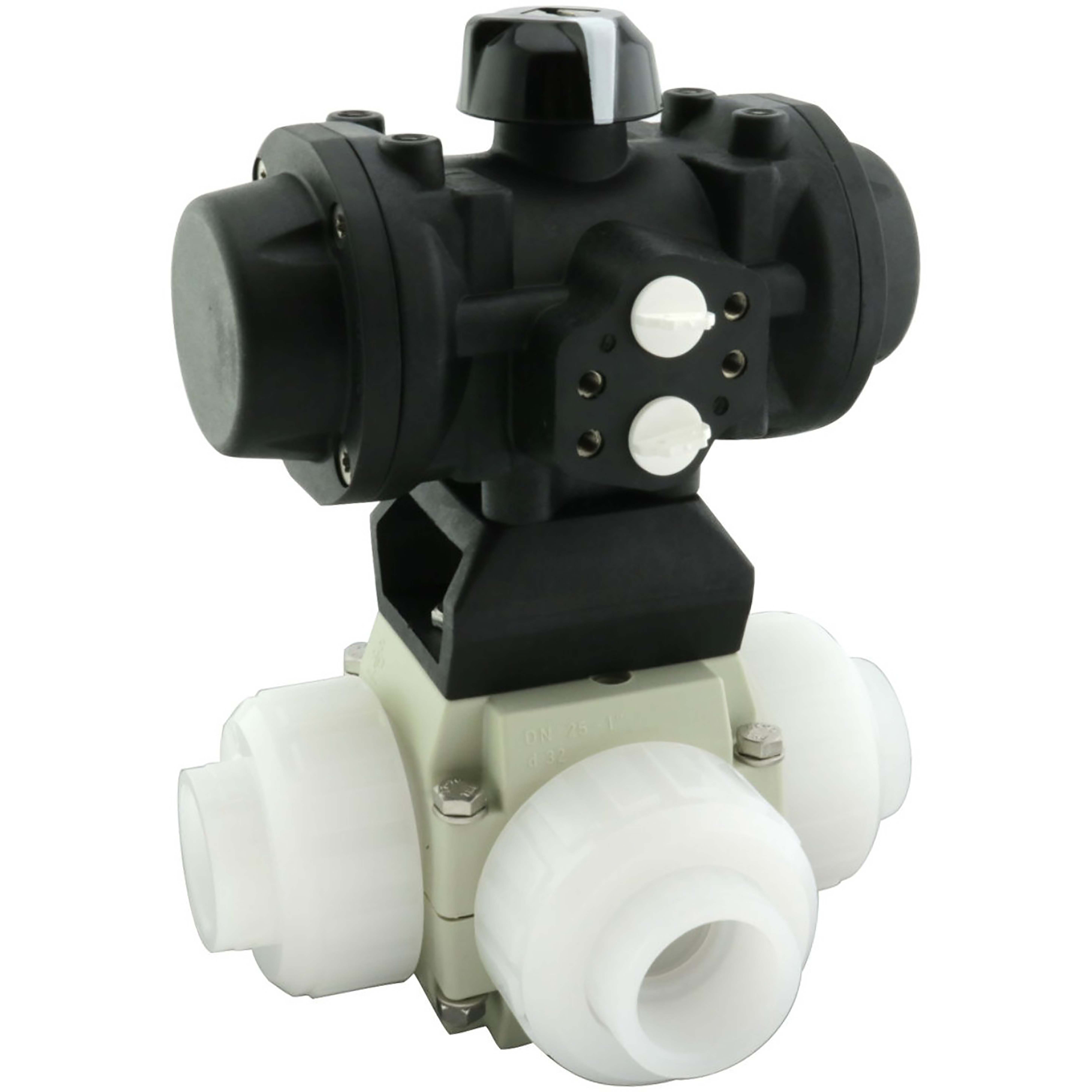PVDF-kulventil L-borrad d40mm FPM med don PVDF00 (DA)