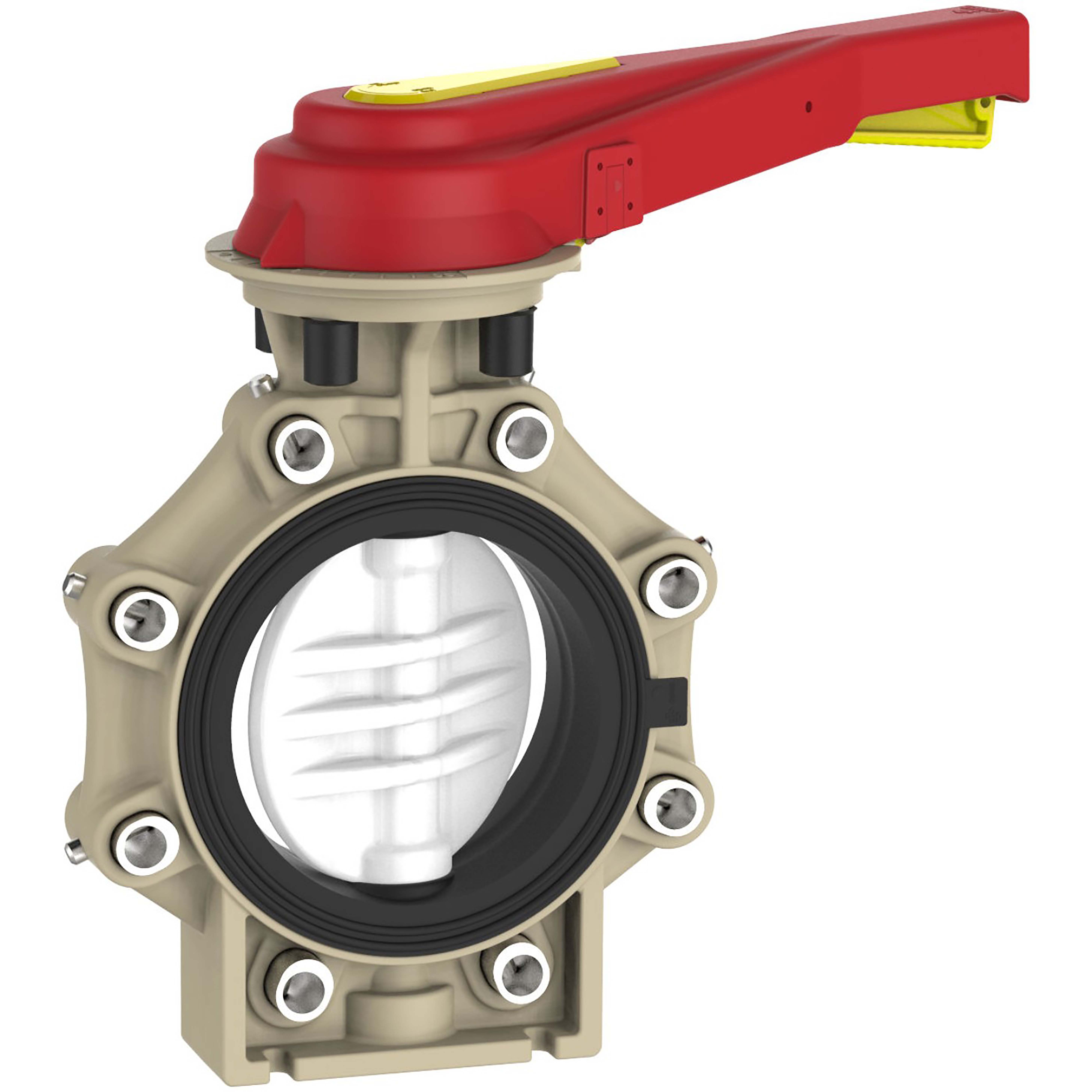 PVDF-vridspjäll d110mm/dn100 EPDM, luggad, handtag