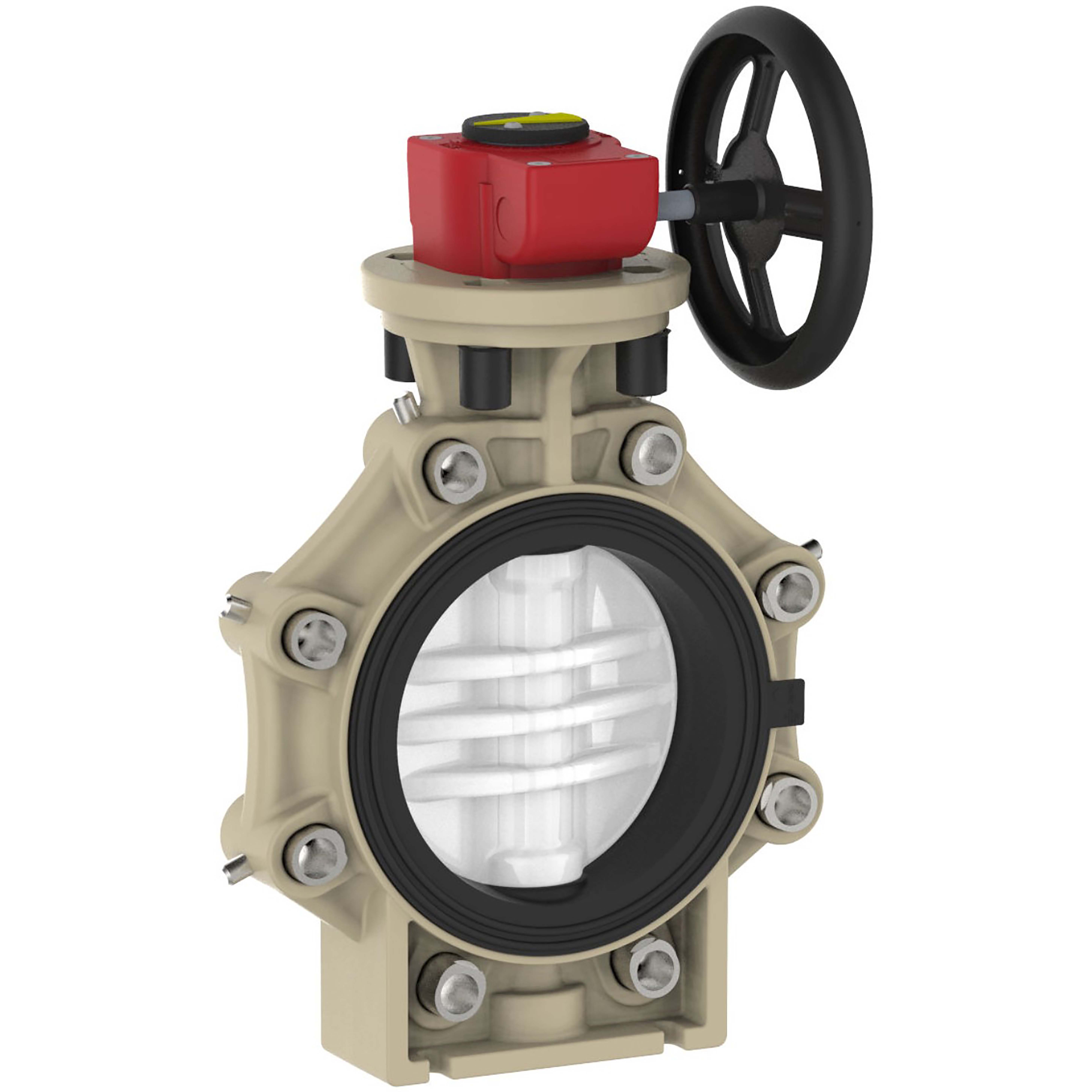 PVDF-vridspjäll d110mm/dn100 FPM, luggad snäckväxel