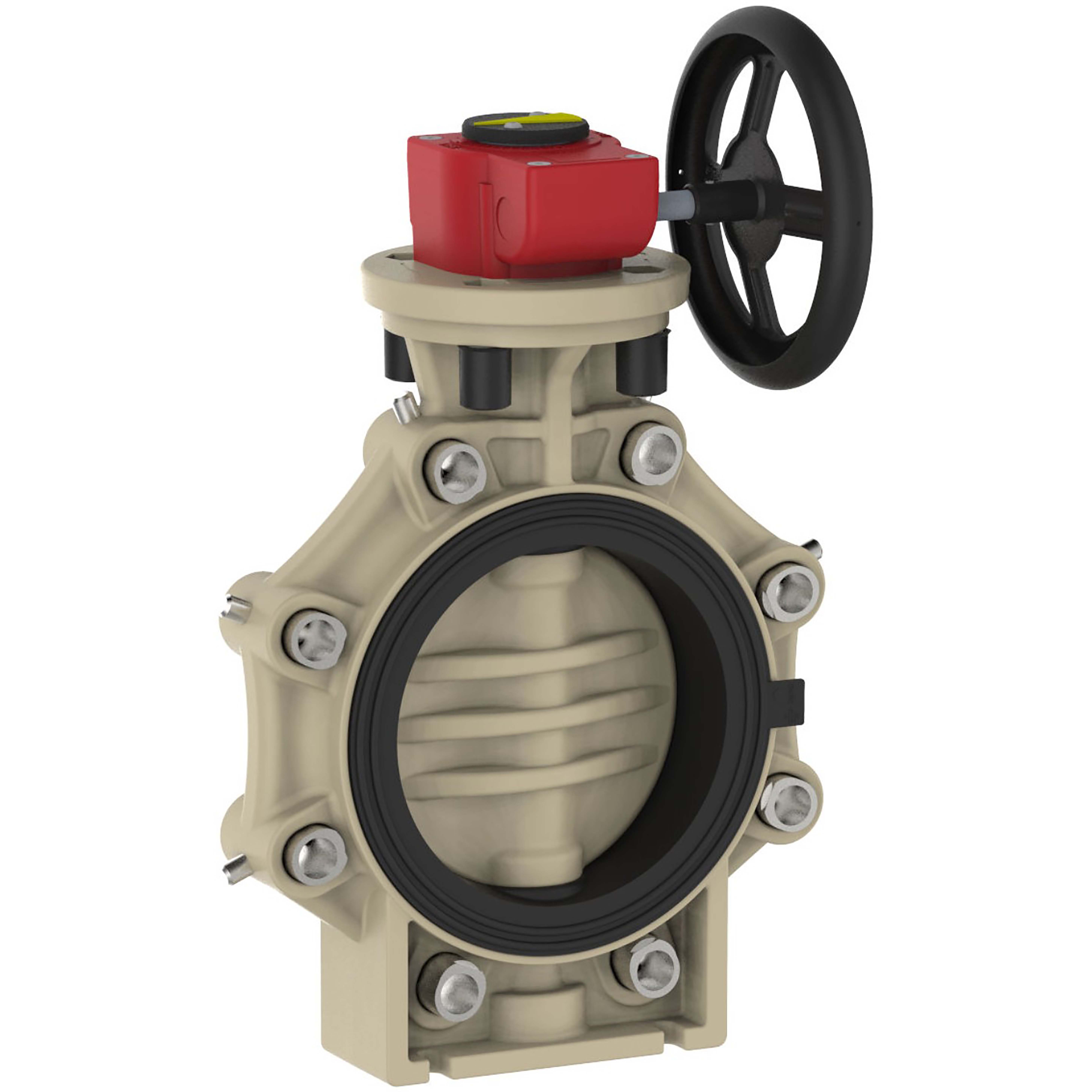 PP-vridspjäll d110mm/dn100 EPDM, luggad snäckväxel