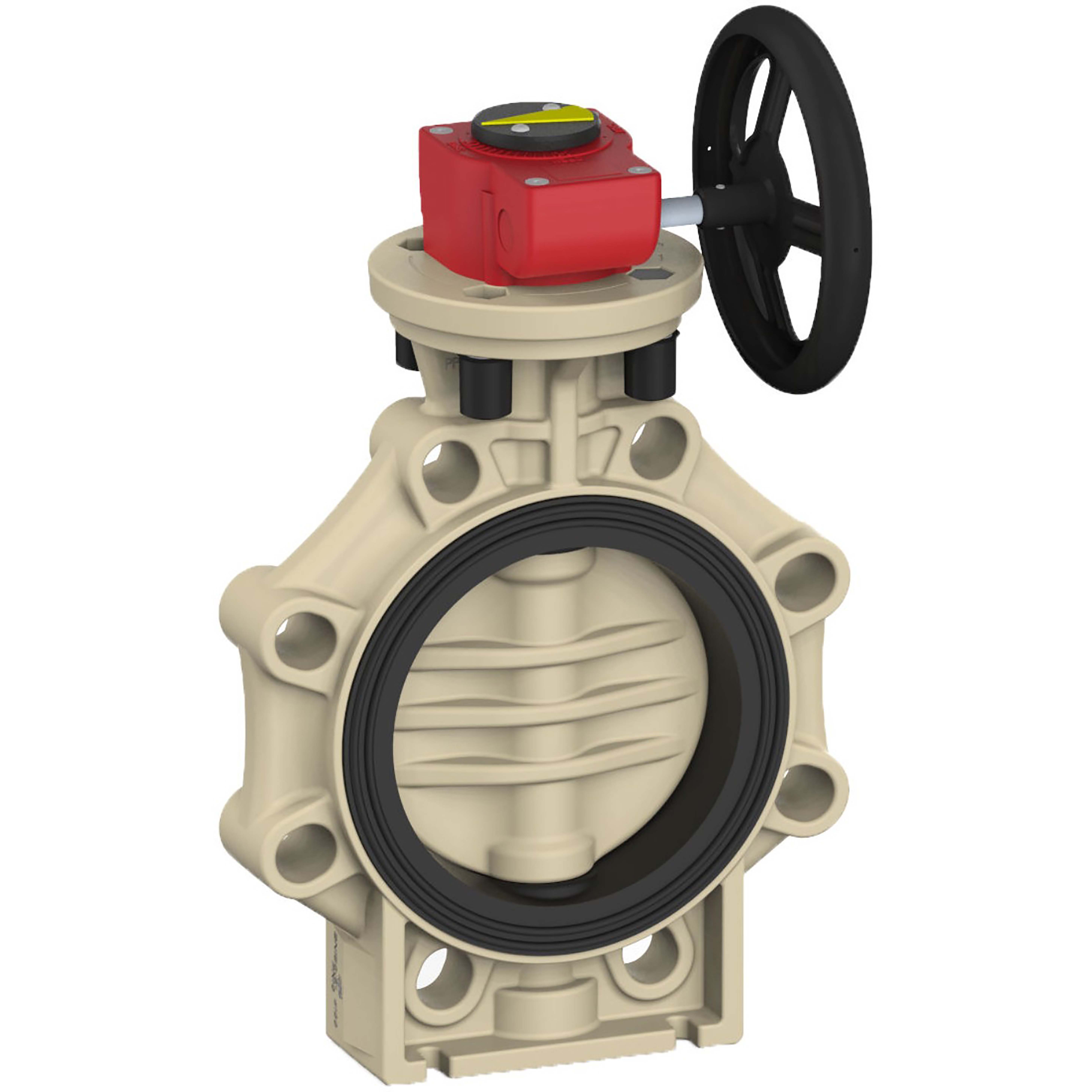 PP-vridspjäll d75mm/dn65 FPM, snäckväxel