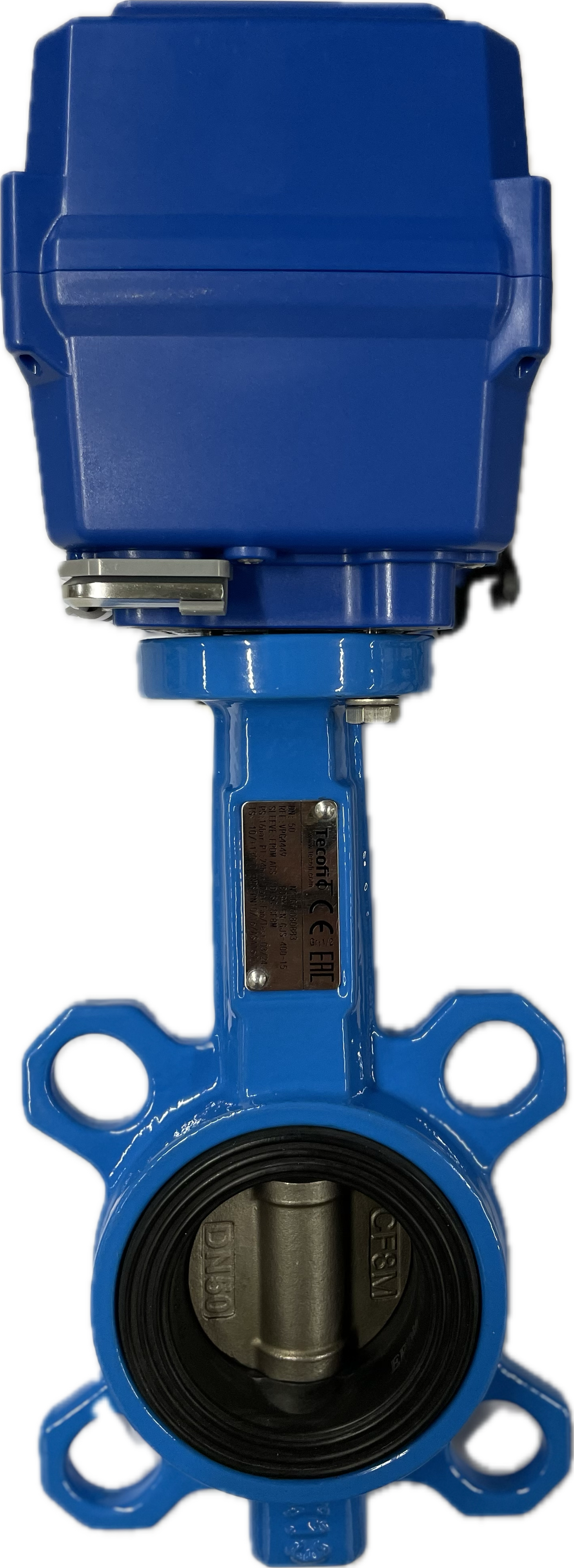 Vridspjällsventil PA 205 med EPDM-foder, Wafer modell för inspänning mellan flänsar, Hög hals anpassad för isolering med monterat elektriskt vriddon för valfri spänning.