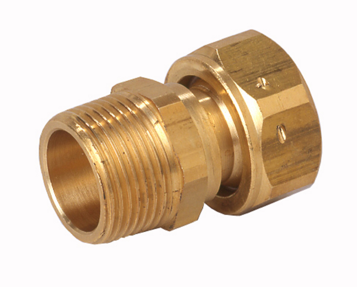 Anslutningskoppling för mätare med lekande mutter, planpackning och möjlighet till plombering genom hål i mutter.