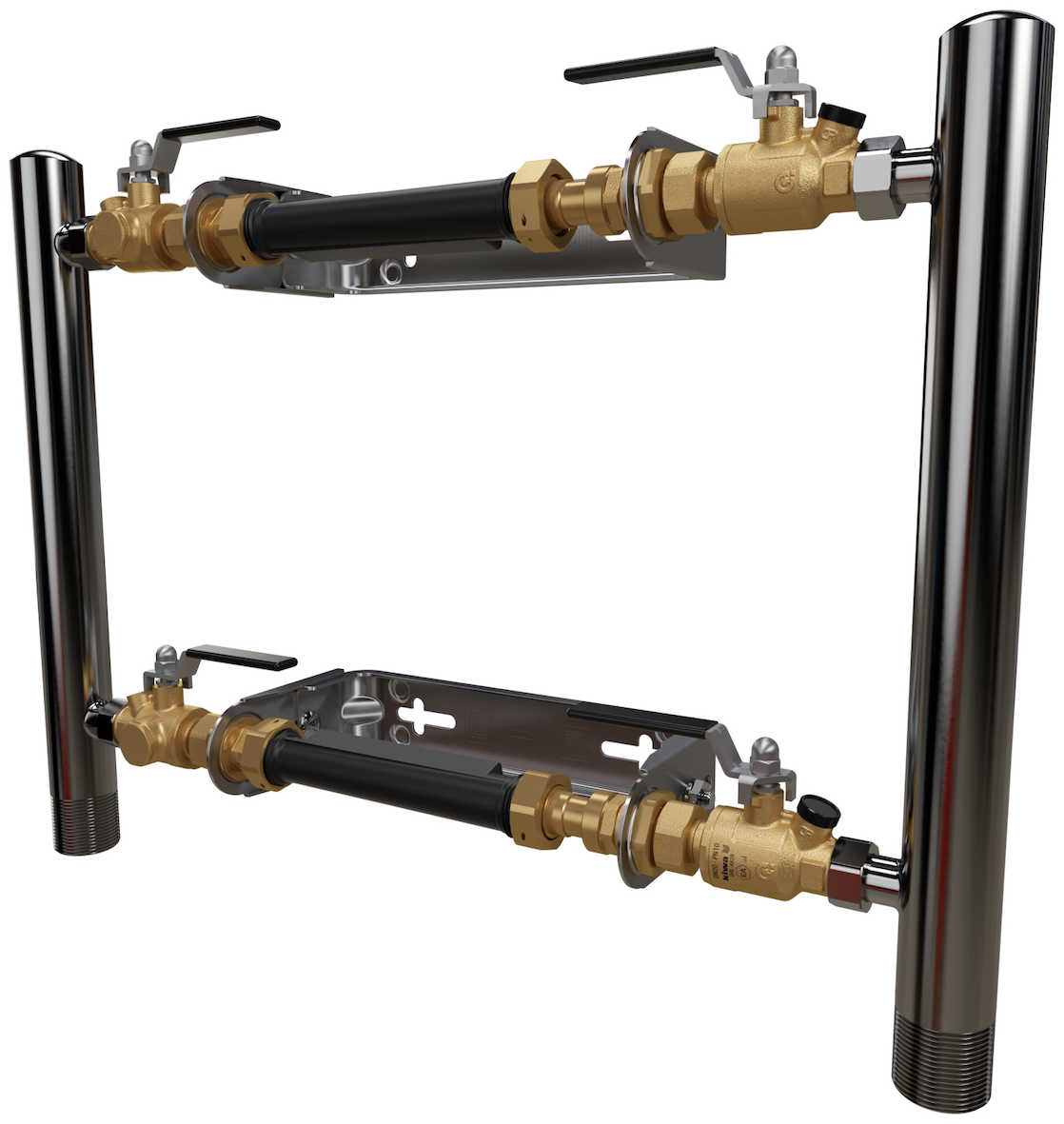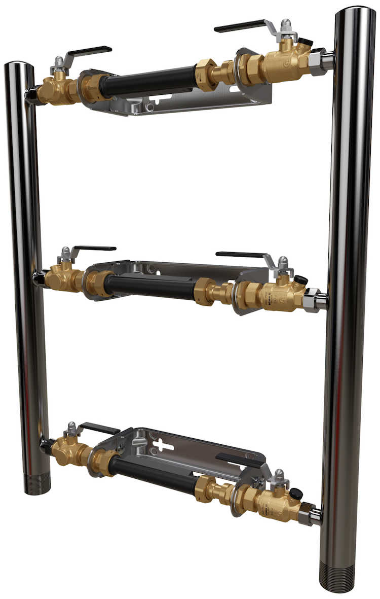 LK Parallellkopplad Vattenmätarkonsol (LK PVK) för vattenmätare Q3 4 med bygglängd 190-220 mm anslutning G25. LK PVK finns i många olika modeller med varianter för enbart 190 mm mätare och 190-200 mm mätare. Genom att stänga ventil före och efter en vattenmätare kan denna demonteras samtidigt som vattenflödet är i gång genom de andra mätarna. LK PVK levereras alltid med en inbyggd backventil i ventilen efter mätaren. Denna backventil är även kontrollerbar och går även att byta ut om den skulle gå sönder. På LK PVK går det även att välja om man vill inkommande uppifrån eller nerifrån detsamma gäller efter mätarna. LK Passbit 190mm som levereras med alla LK PVK är avsedd för att kunna sitta permanent på kallvatten, men bara temporärt på varmvatten. Fördelarna och konsolerna till vattenmätarna är tillverkade i rostfritt stål.