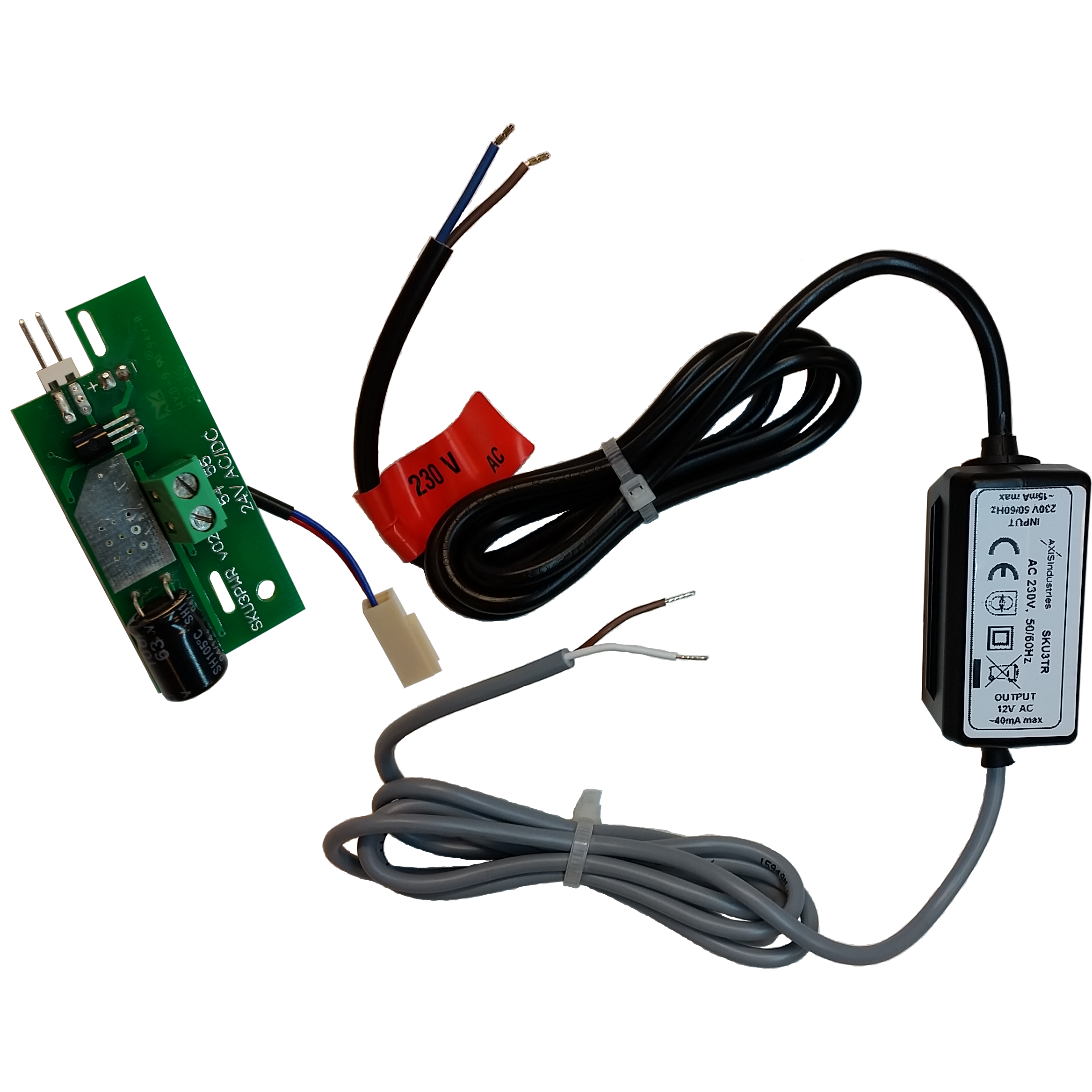 Innehåller 1 st 24VAC/DC-modul samt 1 st 230VAC-transformator. Passar Qalcosonic E3 och E4. Matning 12…42VDC eller 12…36VAC i modul, 230V via extern trafo.
