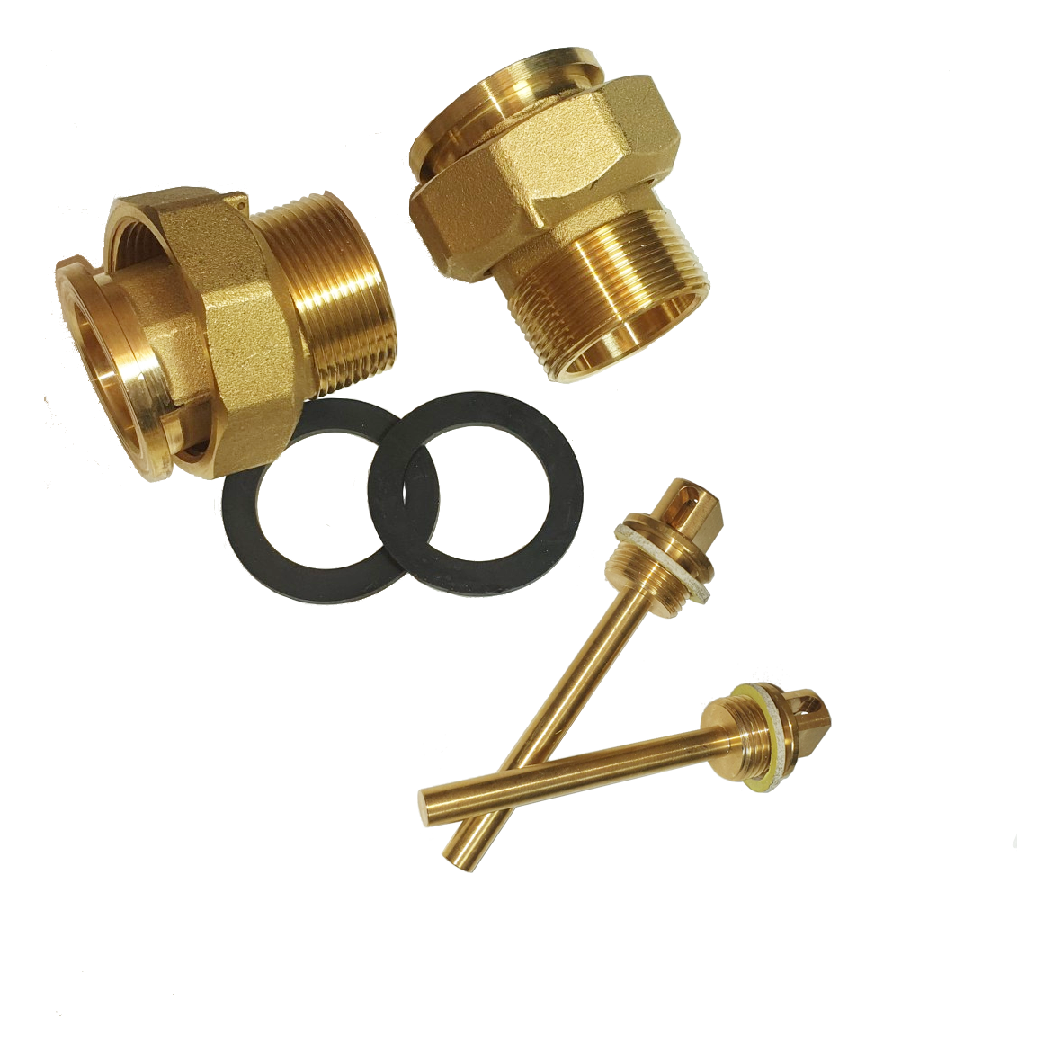 Innehåller 1 par kopplingar G32 och 2 st dykrör 85mm för tempgivare. Passar Qalcosonic E3 och E4.