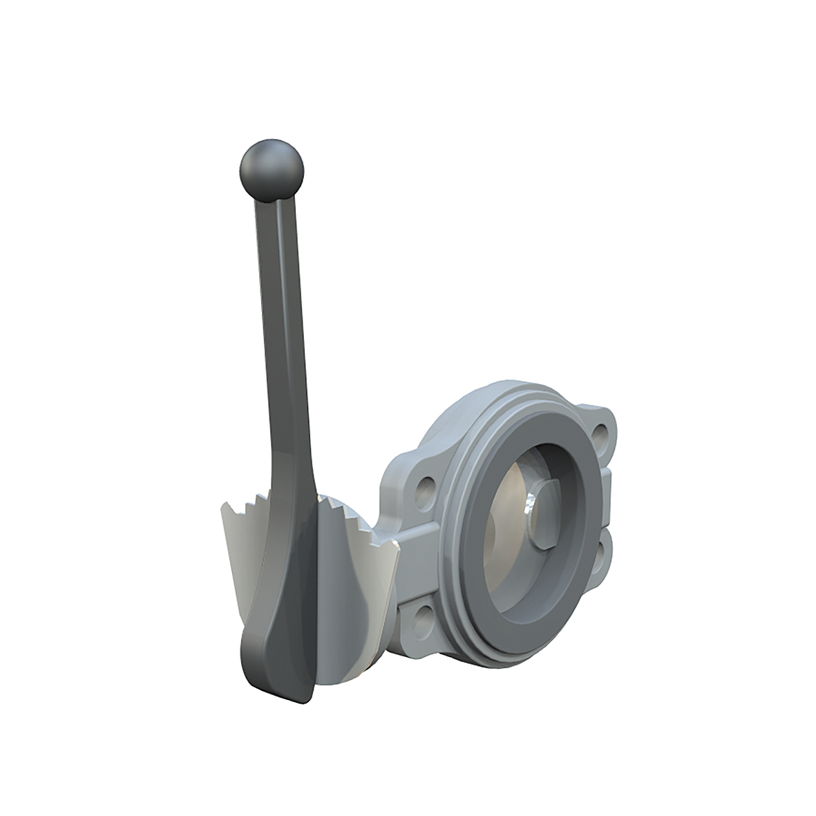 AT 2310S med spak. Ventilsäte av nitrilgummi och spjäll av rostfritt stål.