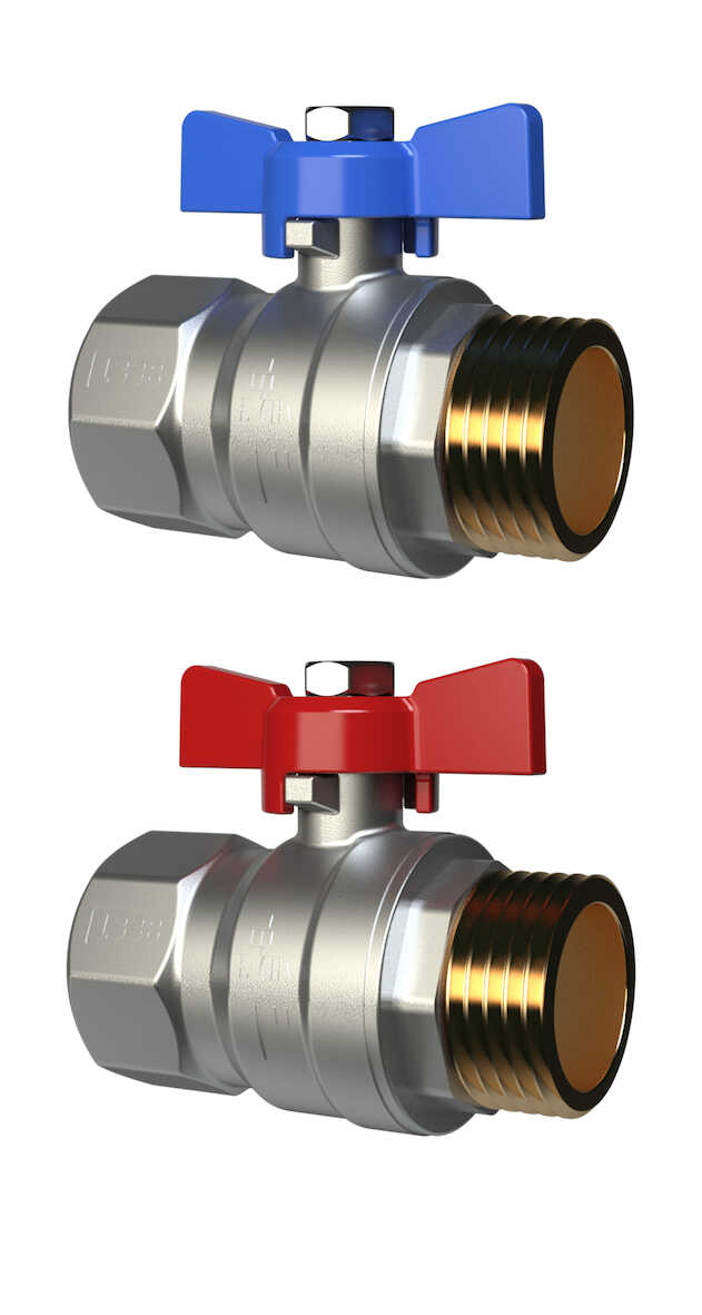Avstängningsventil i avzinkningshärdig mässing för användning mot fördelare UNI-25.