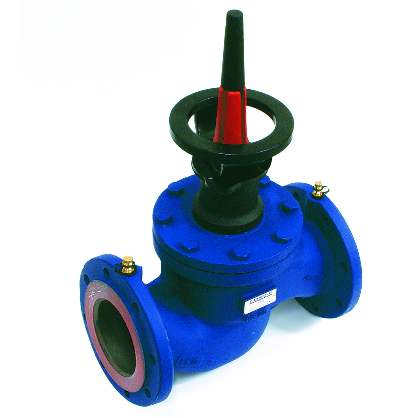 Av gjutjärn. Spindel och kägla av rostfritt stål. Max arbetstryck 1,6 MPa, max arbetstemperatur 130°C. Flänsar enligt DIN 3202 F1. 751 B.