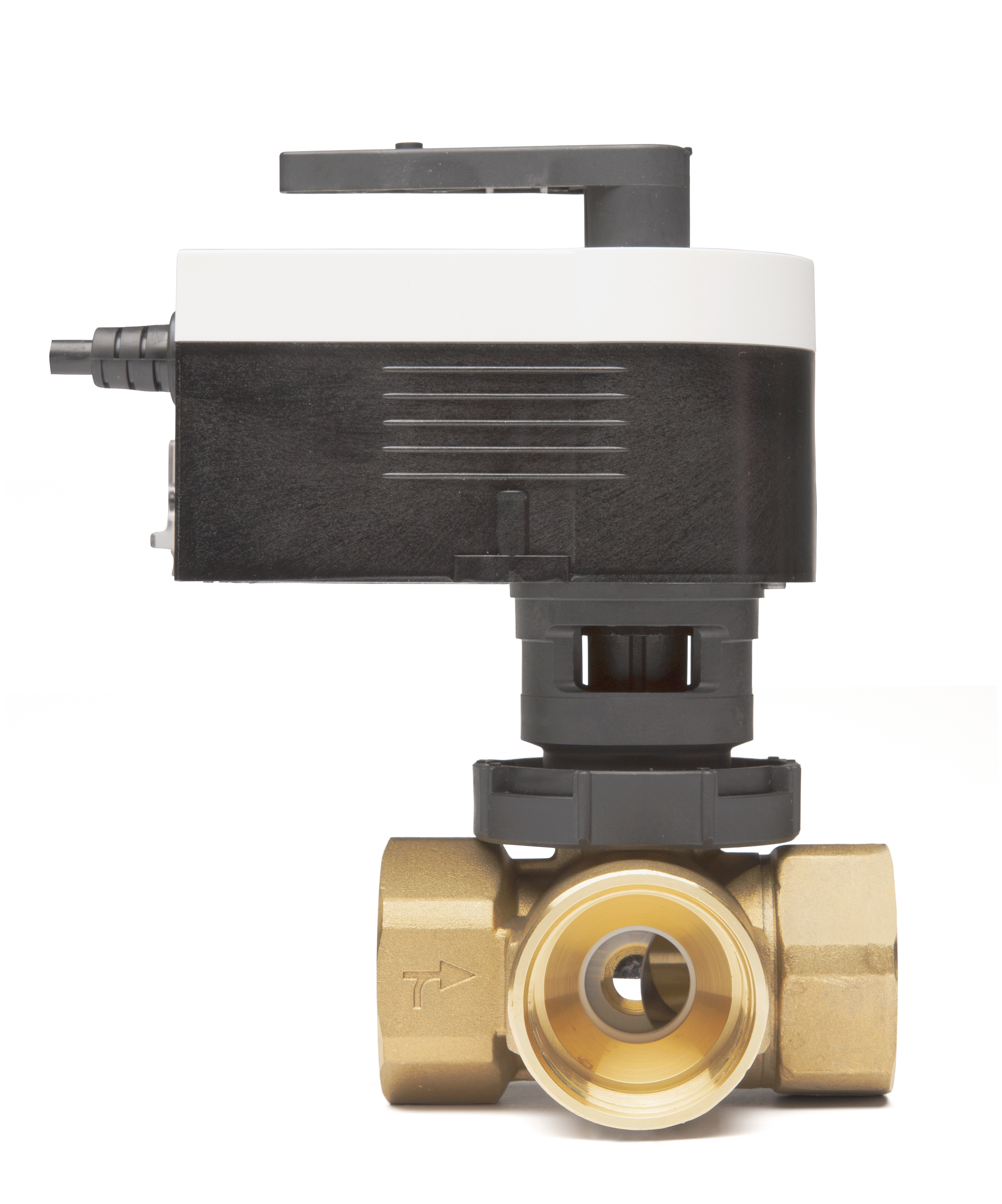 Reglerande kulventil för reglering av köldbärare (ner till -10°C) och värmebärare. 3-vägs DN25 inklusive ställdon 24V med 0...10V styrning (alt. on/off). Växellådan kan frikopplas och köras strömlöst