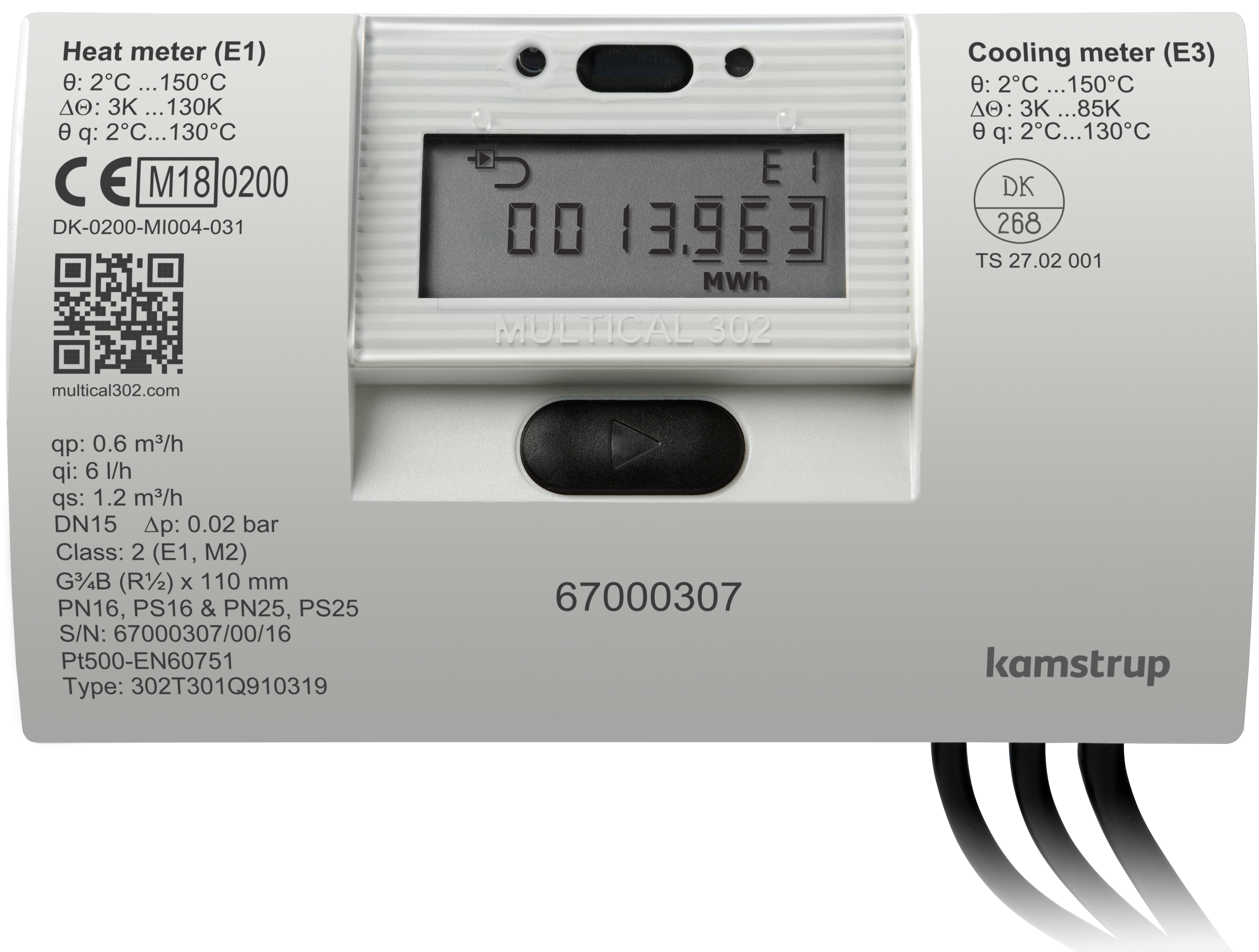 Multical 302, Värmemängdsmätare för undermätning Qp 1,5, G1x130 mm 1,5 m korta direktgivare, R15 nippel, batteri, Wireless M-Bus