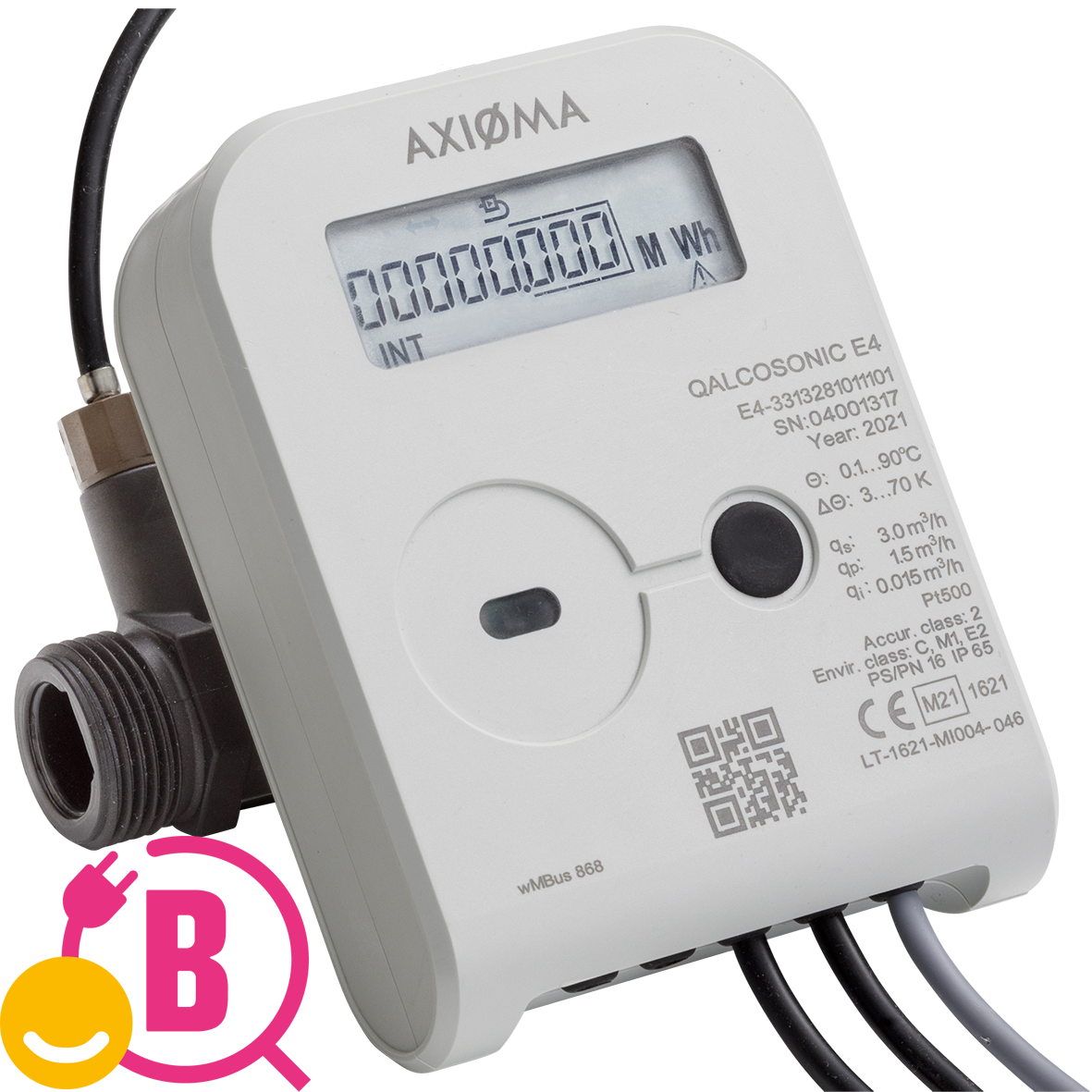 Kompakt termisk energimätare för värme (s.k. kombimätare) av ultraljudstyp. M-bus och wireless M-bus inkluderad, 1 ledig plats för kommunikationsmodul, 2 pulsin/utgångar.