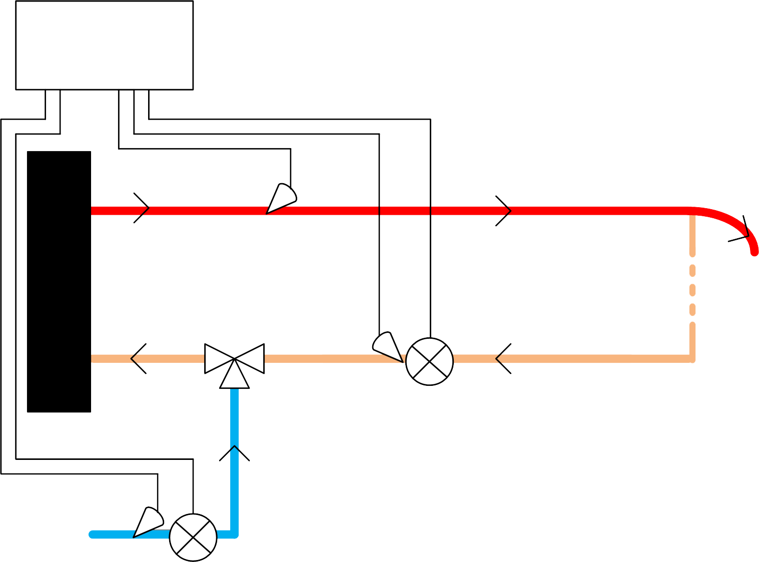 2 st flödesgivare varav den stora på KV-röret och den lilla på VVC. Applikation A2.