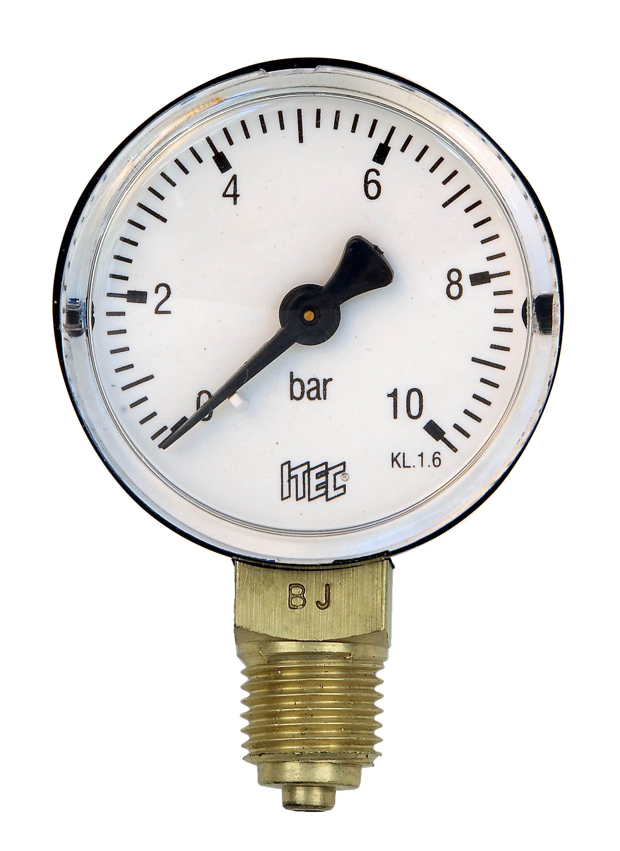 Tryckmätare 618A DN50 0-10 bar utv G10 nedåt märkesvisare plast/mässing